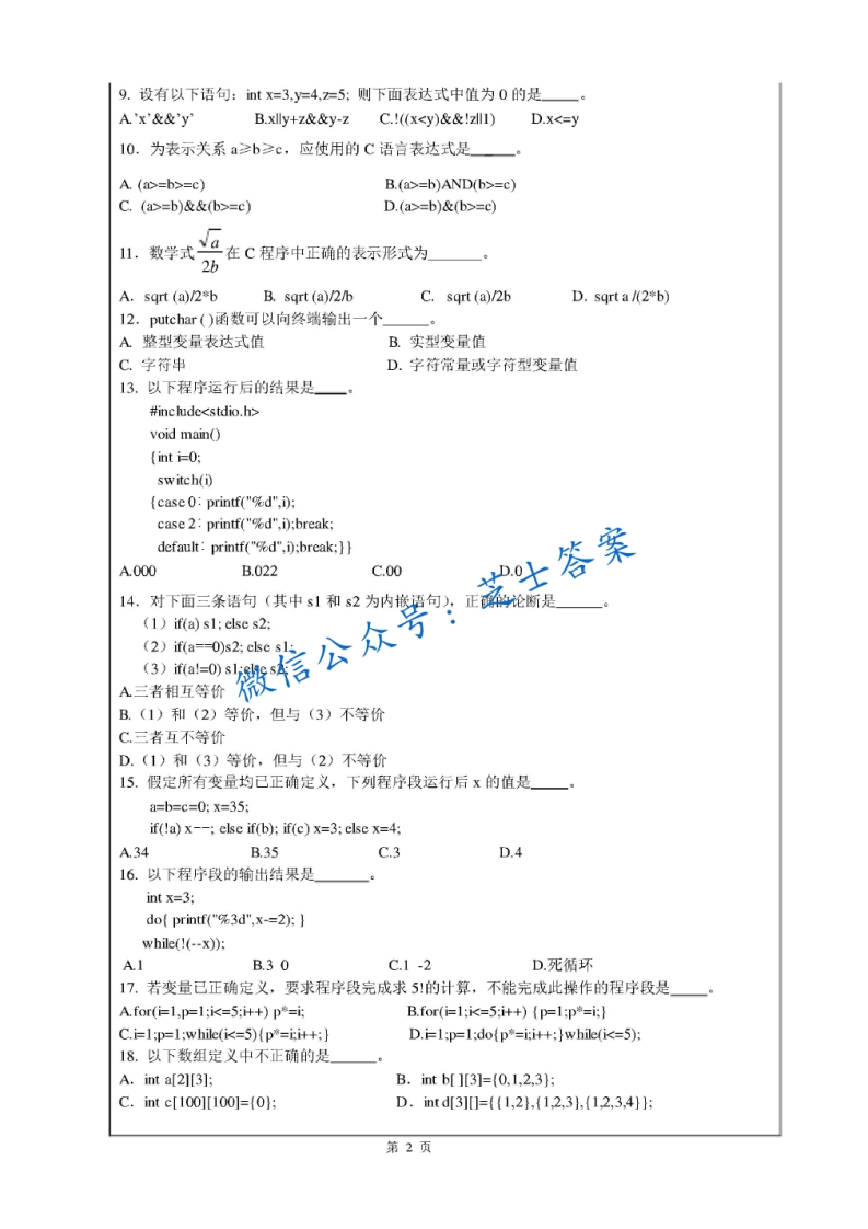 江苏大学《C语言程序设计》2014-2015学年第二学期期末试卷猴哥6个月前发布关注私信1.79MB9页08565江苏大学《C语言程序设计》2014-2015学年第二学期期末试卷此内容为付费资源,请付费后查看10积分年度会员免费月享会员免费登录购买付费资源已售 50 第1页 / 共9页 第2页 / 共9页 第3页 / 共9页 试读已结束,还剩6页,您可下载完整版后进行离线阅读 © 版权声明文章版权归作者所有,未经允许请勿转载。THE END《江苏大学》期中期末历年真题期末试卷 喜欢就支持一下吧点赞65赞赏 分享QQ空间微博QQ好友海报分享复制链接收藏