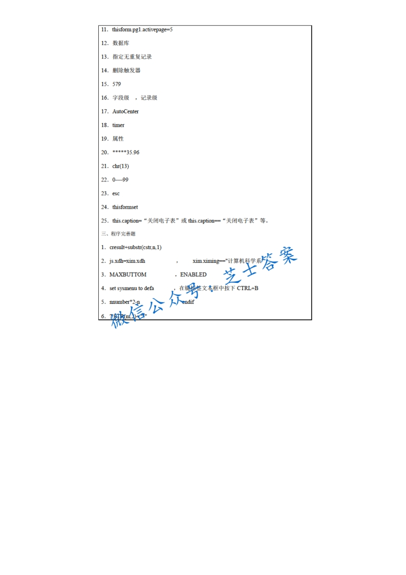 江苏大学《VFP程序设计》2010-2011学年第二学期期末试卷猴哥6个月前发布关注私信0.17MB2页09560江苏大学《VFP程序设计》2010-2011学年第二学期期末试卷此内容为付费资源,请付费后查看10积分年度会员免费月享会员免费登录购买付费资源已售 50 第1页 / 共2页 第2页 / 共2页 已完成全部阅读,共2页 © 版权声明文章版权归作者所有,未经允许请勿转载。THE END《江苏大学》期中期末历年真题期末试卷 喜欢就支持一下吧点赞60赞赏 分享QQ空间微博QQ好友海报分享复制链接收藏