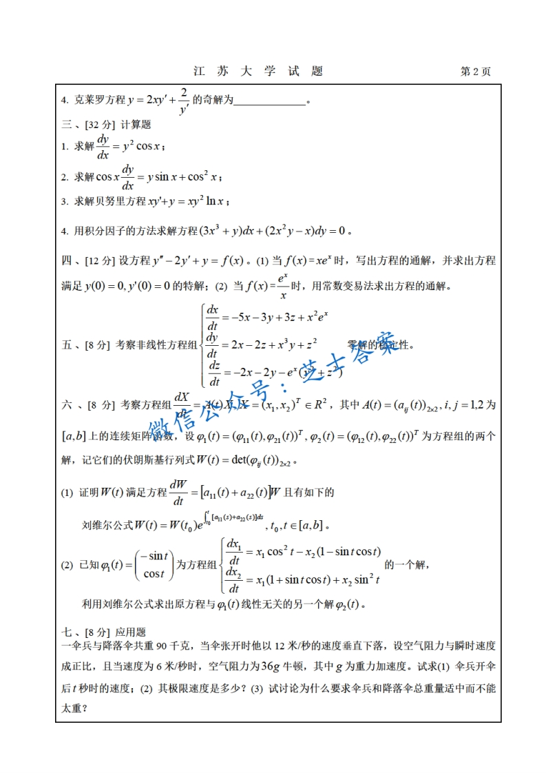 江苏大学《常微分方程》2007-2008学年第二学期期末试卷A卷猴哥6个月前发布关注私信0.41MB3页07834江苏大学《常微分方程》2007-2008学年第二学期期末试卷A卷此内容为付费资源,请付费后查看10积分年度会员免费月享会员免费登录购买付费资源已售 50 第1页 / 共3页 第2页 / 共3页 第3页 / 共3页 已完成全部阅读,共3页 © 版权声明文章版权归作者所有,未经允许请勿转载。THE END《江苏大学》期中期末历年真题期末试卷 喜欢就支持一下吧点赞34赞赏 分享QQ空间微博QQ好友海报分享复制链接收藏