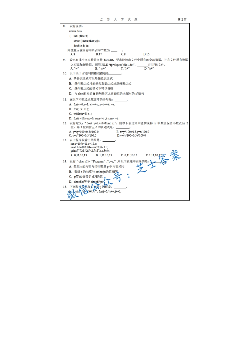 江苏大学《大学计算机基础》2008-2009学年第一学期期末试卷A卷猴哥6个月前发布关注私信1MB9页08735江苏大学《大学计算机基础》2008-2009学年第一学期期末试卷A卷此内容为付费资源,请付费后查看10积分年度会员免费月享会员免费登录购买付费资源已售 50 第1页 / 共9页 第2页 / 共9页 第3页 / 共9页 试读已结束,还剩6页,您可下载完整版后进行离线阅读 © 版权声明文章版权归作者所有,未经允许请勿转载。THE END《江苏大学》期中期末历年真题期末试卷 喜欢就支持一下吧点赞35赞赏 分享QQ空间微博QQ好友海报分享复制链接收藏