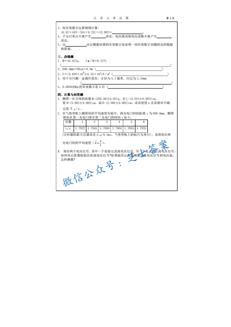 江苏大学《大学物理实验》2008-2009学年第二学期期末试卷猴哥6个月前发布关注私信0.47MB4页08058江苏大学《大学物理实验》2008-2009学年第二学期期末试卷此内容为付费资源,请付费后查看10积分年度会员免费月享会员免费登录购买付费资源已售 50 第1页 / 共4页 第2页 / 共4页 第3页 / 共4页 试读已结束,还剩1页,您可下载完整版后进行离线阅读 © 版权声明文章版权归作者所有,未经允许请勿转载。THE END《江苏大学》期中期末历年真题期末试卷 喜欢就支持一下吧点赞58赞赏 分享QQ空间微博QQ好友海报分享复制链接收藏