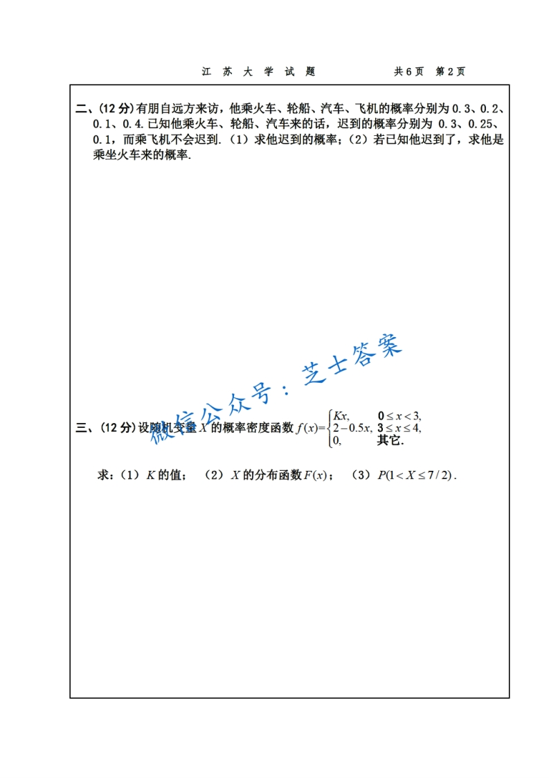 江苏大学《概率论与数理统计》2013-2014学年第一学期期末试卷A卷猴哥6个月前发布关注私信0.70MB6页05544江苏大学《概率论与数理统计》2013-2014学年第一学期期末试卷A卷此内容为付费资源,请付费后查看10积分年度会员免费月享会员免费登录购买付费资源已售 50 第1页 / 共6页 第2页 / 共6页 第3页 / 共6页 试读已结束,还剩3页,您可下载完整版后进行离线阅读 © 版权声明文章版权归作者所有,未经允许请勿转载。THE END《江苏大学》期中期末历年真题期末试卷 喜欢就支持一下吧点赞44赞赏 分享QQ空间微博QQ好友海报分享复制链接收藏
