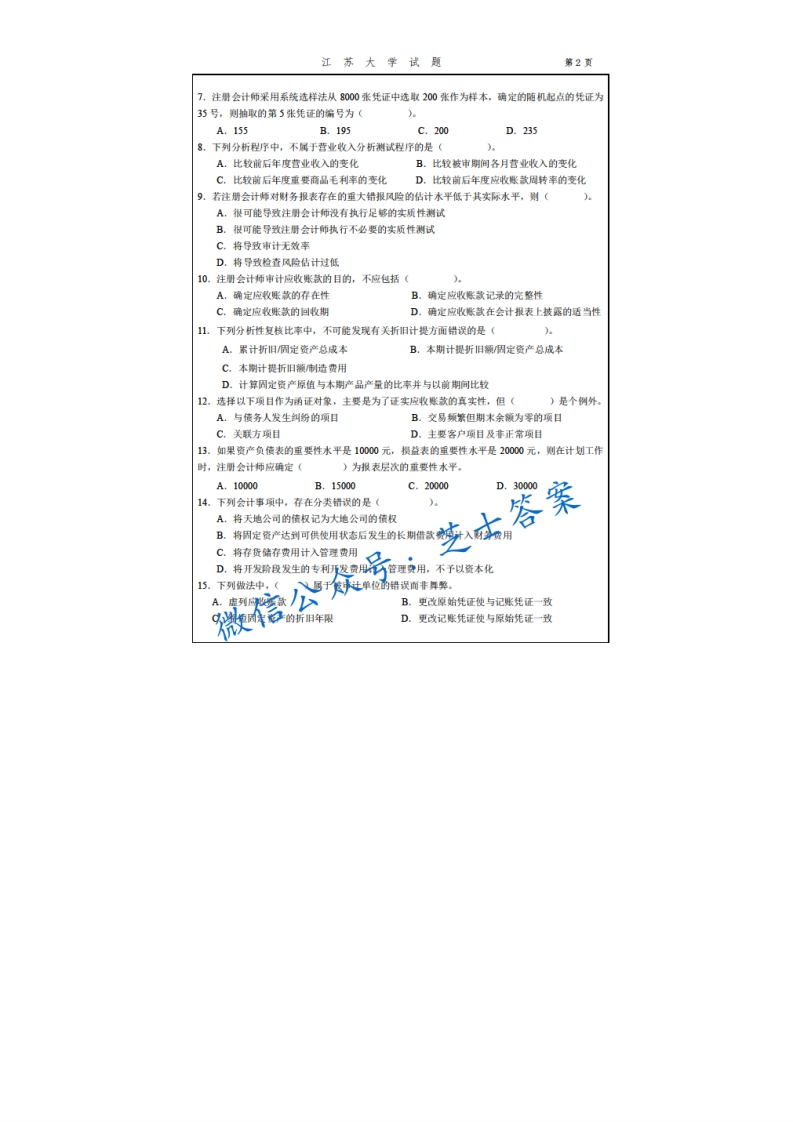 江苏大学《审计学》2010-2011学年第二学期期末试卷A卷