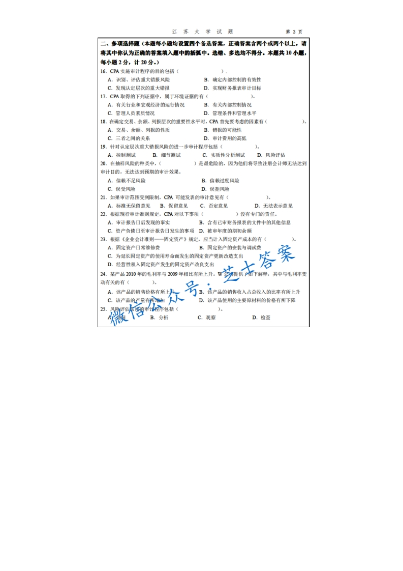 江苏大学《审计学》2010-2011学年第二学期期末试卷A卷-学习资源网 - 分享优质学习资料
