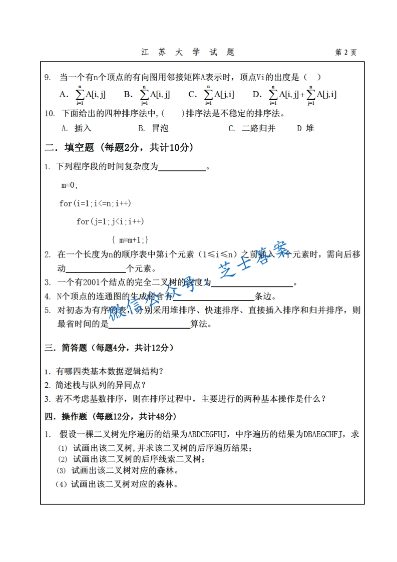 江苏大学《数据结构》2008-2009学年第二学期期末试卷A卷猴哥6个月前发布关注私信0.96MB4页09661江苏大学《数据结构》2008-2009学年第二学期期末试卷A卷此内容为付费资源,请付费后查看10积分年度会员免费月享会员免费登录购买付费资源已售 50 第1页 / 共4页 第2页 / 共4页 第3页 / 共4页 试读已结束,还剩1页,您可下载完整版后进行离线阅读 © 版权声明文章版权归作者所有,未经允许请勿转载。THE END期末试卷 喜欢就支持一下吧点赞61赞赏 分享QQ空间微博QQ好友海报分享复制链接收藏