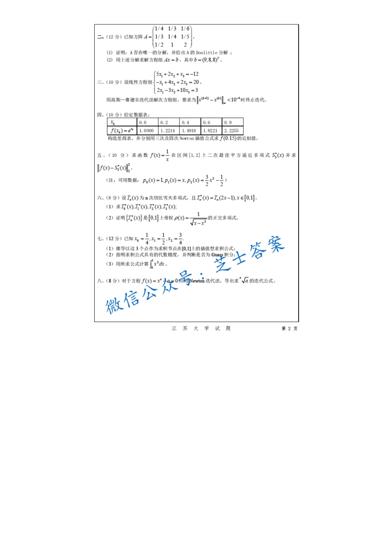 江苏大学《数值分析》2012-2013学年第一学期期末试卷A卷猴哥6个月前发布关注私信0.28MB2页08653江苏大学《数值分析》2012-2013学年第一学期期末试卷A卷此内容为付费资源,请付费后查看10积分年度会员免费月享会员免费登录购买付费资源已售 50 第1页 / 共2页 第2页 / 共2页 已完成全部阅读,共2页 © 版权声明文章版权归作者所有,未经允许请勿转载。THE END《江苏大学》期中期末历年真题期末试卷 喜欢就支持一下吧点赞53赞赏 分享QQ空间微博QQ好友海报分享复制链接收藏