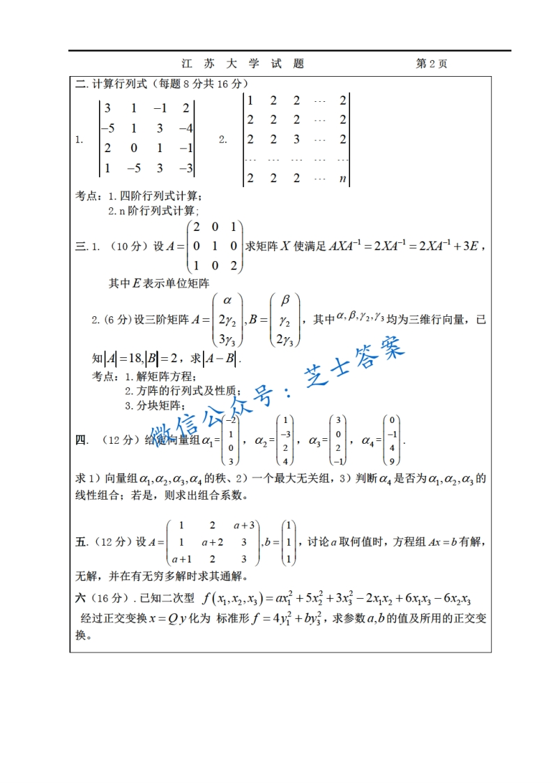 江苏大学《线性代数》2011-2012学年第一学期期末试卷A卷猴哥6个月前发布关注私信0.65MB4页08551江苏大学《线性代数》2011-2012学年第一学期期末试卷A卷此内容为付费资源,请付费后查看10积分年度会员免费月享会员免费登录购买付费资源已售 50 第1页 / 共4页 第2页 / 共4页 第3页 / 共4页 试读已结束,还剩1页,您可下载完整版后进行离线阅读 © 版权声明文章版权归作者所有,未经允许请勿转载。THE END《江苏大学》期中期末历年真题期末试卷 喜欢就支持一下吧点赞51赞赏 分享QQ空间微博QQ好友海报分享复制链接收藏