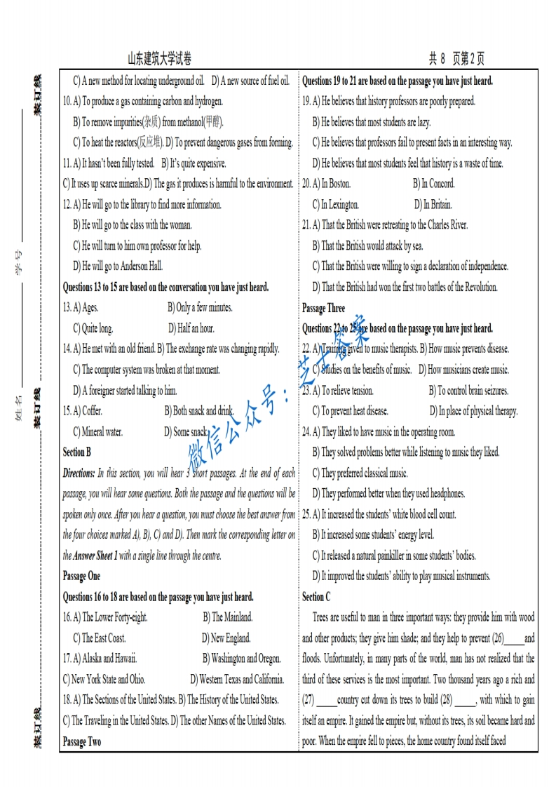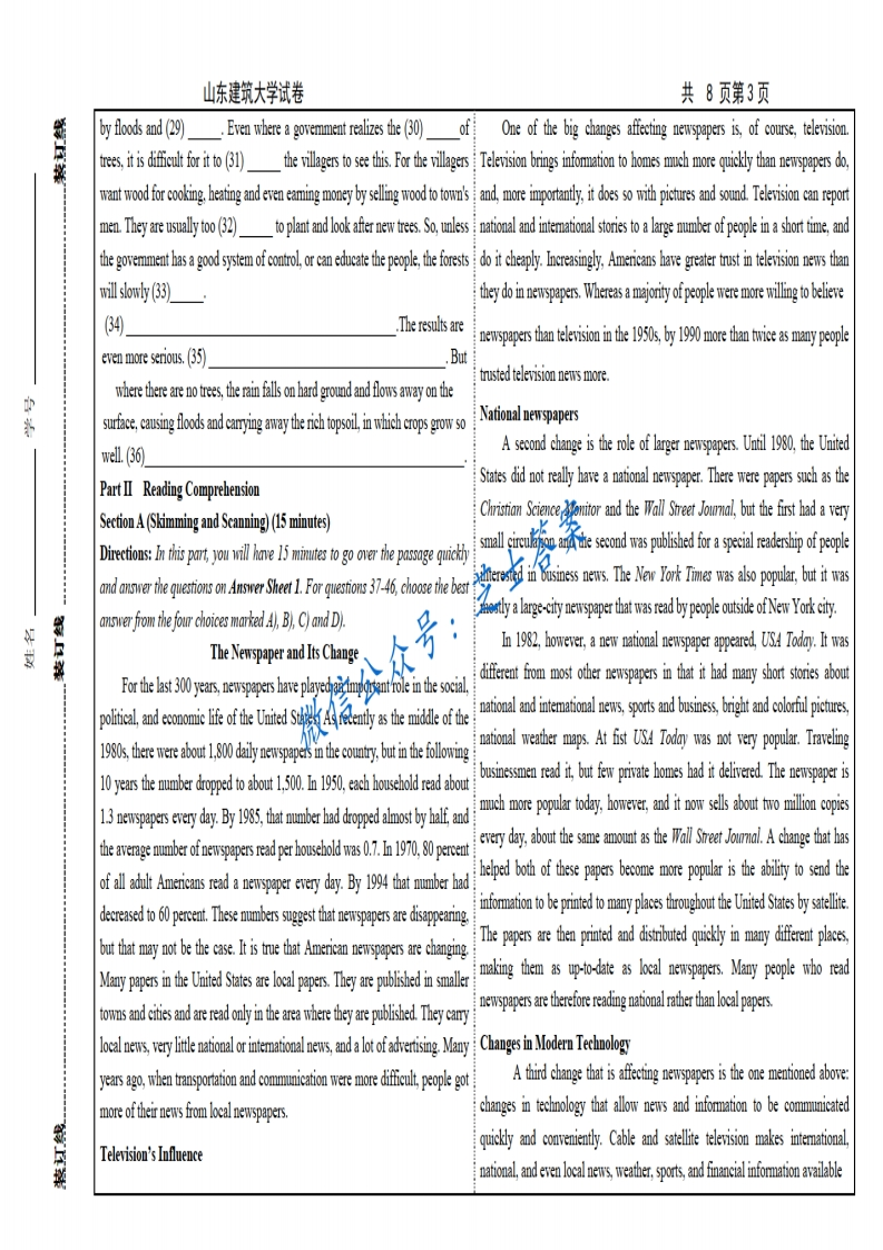 山东建筑大学《大学英语》2011-2012学年第二学期期末试卷B卷