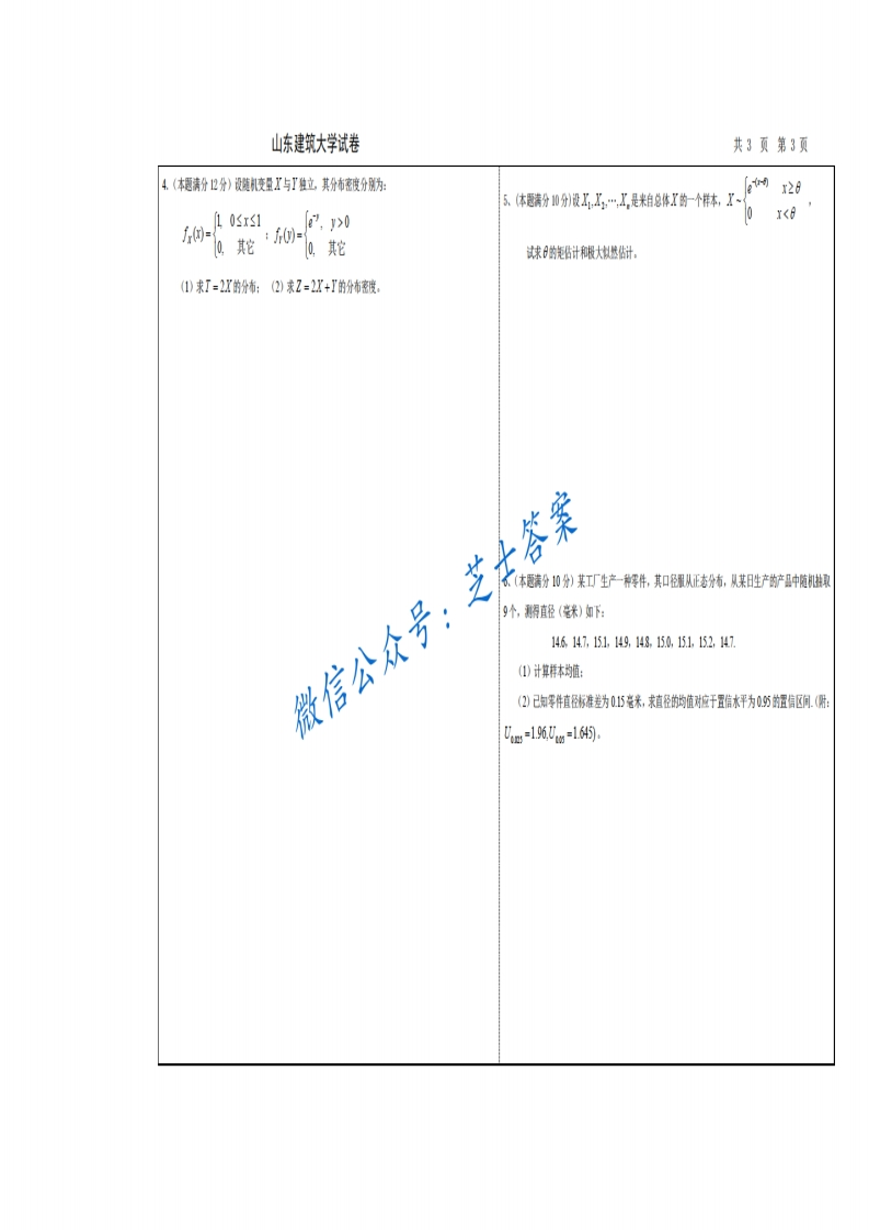 山东建筑大学《概率论与数理统计》2009-2010学年第一学期期末试卷A卷猴哥6个月前发布关注私信0.61MB5页04758山东建筑大学《概率论与数理统计》2009-2010学年第一学期期末试卷A卷此内容为付费资源,请付费后查看10积分年度会员免费月享会员免费登录购买付费资源已售 50 第1页 / 共5页 第2页 / 共5页 第3页 / 共5页 试读已结束,还剩2页,您可下载完整版后进行离线阅读 © 版权声明文章版权归作者所有,未经允许请勿转载。THE END《山东建筑大学》期中期末历年真题期末试卷 喜欢就支持一下吧点赞58赞赏 分享QQ空间微博QQ好友海报分享复制链接收藏