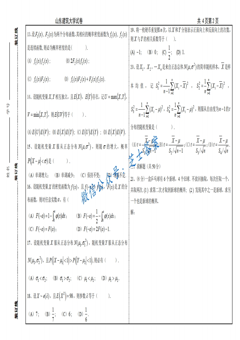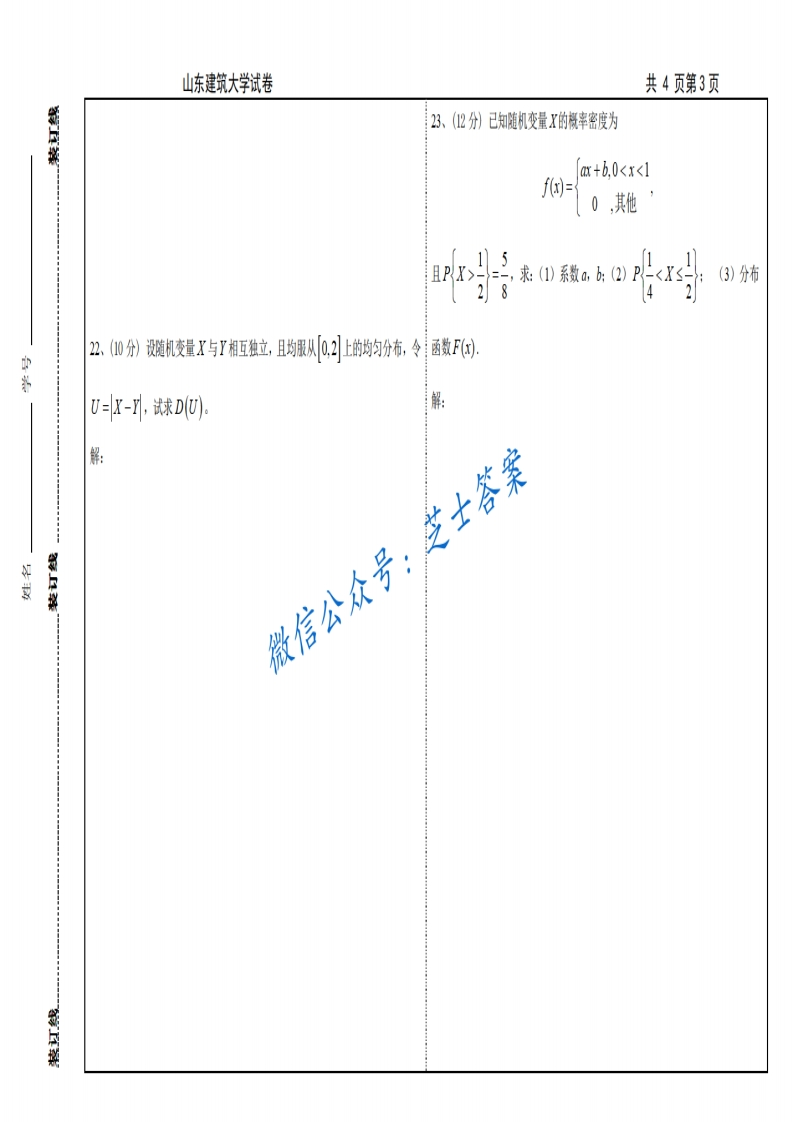山东建筑大学《概率论与数理统计》2011-2012学年第二学期期末试卷B卷猴哥6个月前发布关注私信0.77MB5页07641山东建筑大学《概率论与数理统计》2011-2012学年第二学期期末试卷B卷此内容为付费资源,请付费后查看10积分年度会员免费月享会员免费登录购买付费资源已售 50 第1页 / 共5页 第2页 / 共5页 第3页 / 共5页 试读已结束,还剩2页,您可下载完整版后进行离线阅读 © 版权声明文章版权归作者所有,未经允许请勿转载。THE END《山东建筑大学》期中期末历年真题期末试卷 喜欢就支持一下吧点赞41赞赏 分享QQ空间微博QQ好友海报分享复制链接收藏
