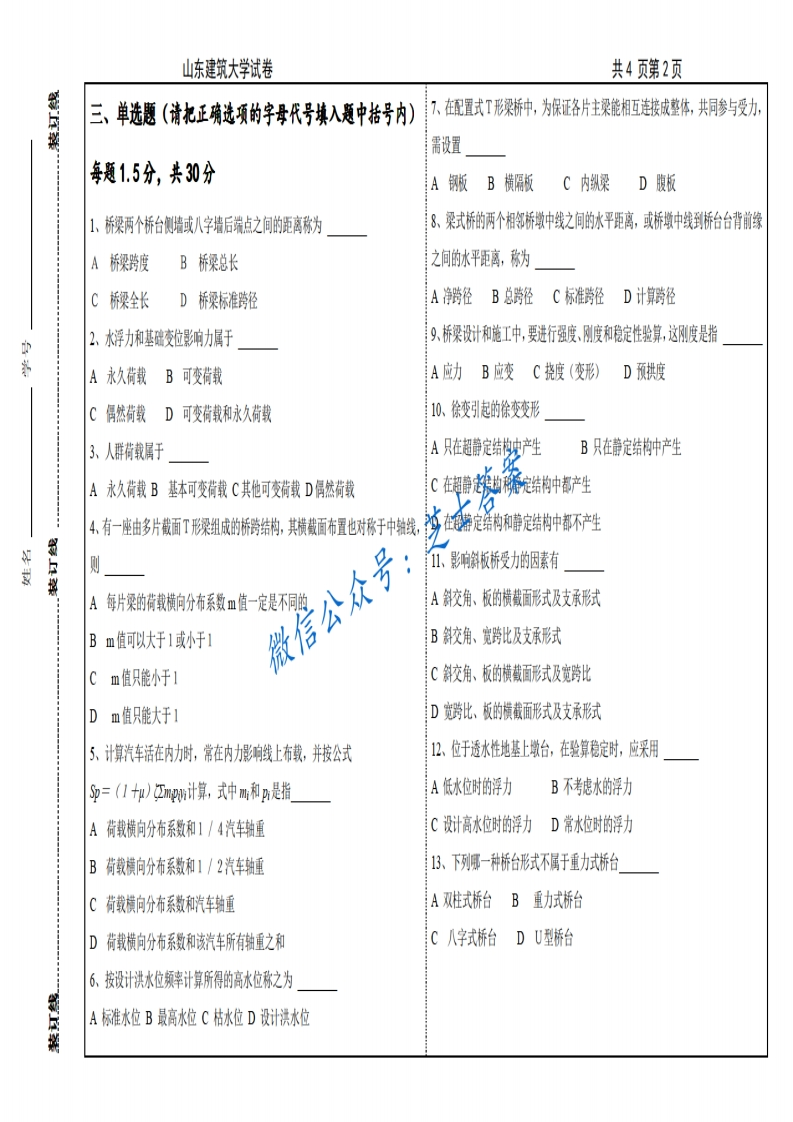 山东建筑大学《桥梁工程》2011-2012学年第二学期期末试卷A卷猴哥6个月前发布关注私信0.95MB4页09161山东建筑大学《桥梁工程》2011-2012学年第二学期期末试卷A卷此内容为付费资源,请付费后查看10积分年度会员免费月享会员免费登录购买付费资源已售 50 第1页 / 共4页 第2页 / 共4页 第3页 / 共4页 试读已结束,还剩1页,您可下载完整版后进行离线阅读 © 版权声明文章版权归作者所有,未经允许请勿转载。THE END《山东建筑大学》期中期末历年真题期末试卷 喜欢就支持一下吧点赞61赞赏 分享QQ空间微博QQ好友海报分享复制链接收藏