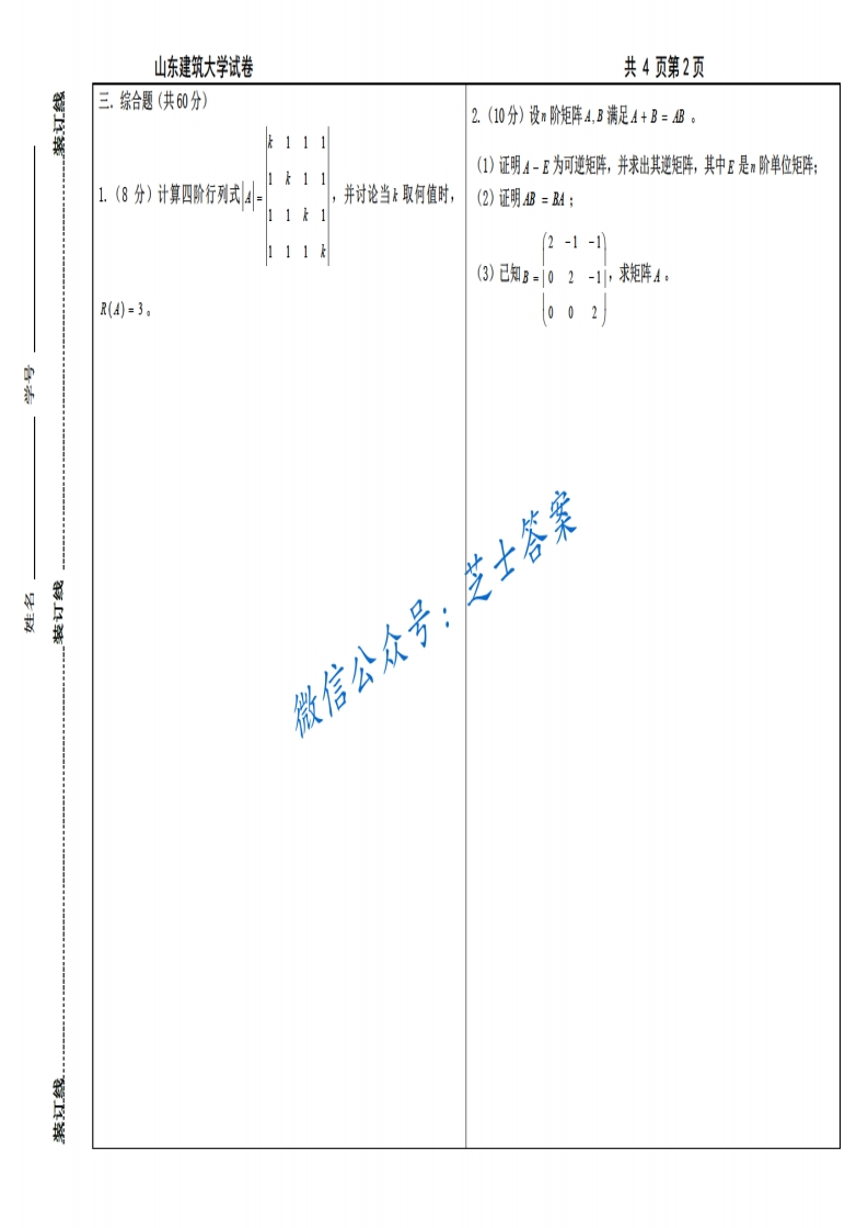 山东建筑大学《线性代数》2014-2015学年第二学期期末试卷A卷猴哥6个月前发布关注私信0.51MB5页06344山东建筑大学《线性代数》2014-2015学年第二学期期末试卷A卷此内容为付费资源,请付费后查看10积分年度会员免费月享会员免费登录购买付费资源已售 50 第1页 / 共5页 第2页 / 共5页 第3页 / 共5页 试读已结束,还剩2页,您可下载完整版后进行离线阅读 © 版权声明文章版权归作者所有,未经允许请勿转载。THE END《山东建筑大学》期中期末历年真题期末试卷 喜欢就支持一下吧点赞44赞赏 分享QQ空间微博QQ好友海报分享复制链接收藏