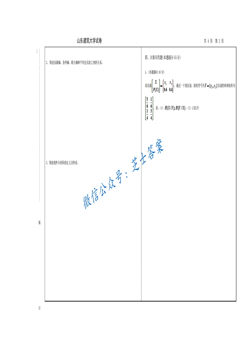 山东建筑大学《信息论基础》2009-2010学年第二学期期末试卷A卷猴哥6个月前发布关注私信0.43MB4页08613山东建筑大学《信息论基础》2009-2010学年第二学期期末试卷A卷此内容为付费资源,请付费后查看10积分年度会员免费月享会员免费登录购买付费资源已售 50 第1页 / 共4页 第2页 / 共4页 第3页 / 共4页 试读已结束,还剩1页,您可下载完整版后进行离线阅读 © 版权声明文章版权归作者所有,未经允许请勿转载。THE END《山东建筑大学》期中期末历年真题期末试卷 喜欢就支持一下吧点赞13赞赏 分享QQ空间微博QQ好友海报分享复制链接收藏