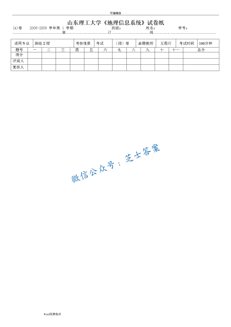 山东理工大学《地理信息系统》2008-2009学年第一学期期末试卷A卷猴哥6个月前发布关注私信0.70MB9页05916山东理工大学《地理信息系统》2008-2009学年第一学期期末试卷A卷此内容为付费资源,请付费后查看10积分年度会员免费月享会员免费登录购买付费资源已售 50 第1页 / 共9页 第2页 / 共9页 第3页 / 共9页 试读已结束,还剩6页,您可下载完整版后进行离线阅读 © 版权声明文章版权归作者所有,未经允许请勿转载。THE END《山东理工大学》期中期末历年真题期末试卷 喜欢就支持一下吧点赞16赞赏 分享QQ空间微博QQ好友海报分享复制链接收藏