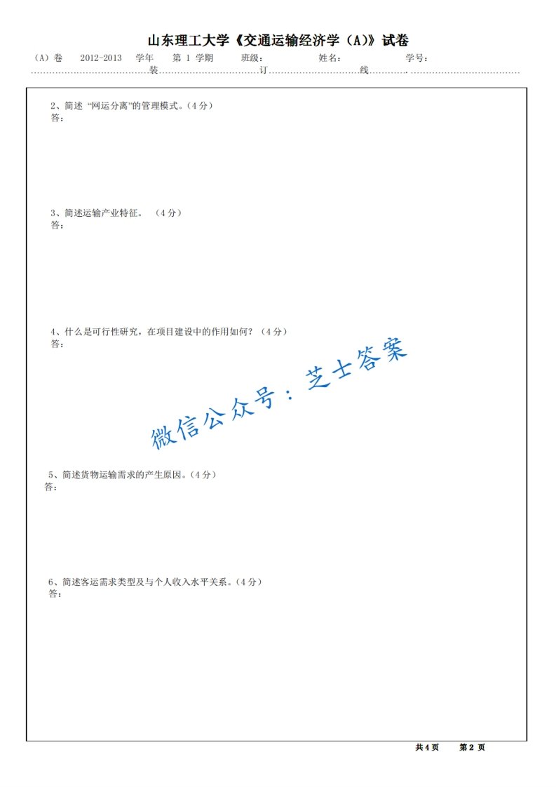 山东理工大学《交通运输经济学》2012-2013学年第一学期期末试卷A卷猴哥6个月前发布关注私信0.59MB4页08711山东理工大学《交通运输经济学》2012-2013学年第一学期期末试卷A卷此内容为付费资源,请付费后查看10积分年度会员免费月享会员免费登录购买付费资源已售 50 第1页 / 共4页 第2页 / 共4页 第3页 / 共4页 试读已结束,还剩1页,您可下载完整版后进行离线阅读 © 版权声明文章版权归作者所有,未经允许请勿转载。THE END《山东理工大学》期中期末历年真题期末试卷 喜欢就支持一下吧点赞11赞赏 分享QQ空间微博QQ好友海报分享复制链接收藏