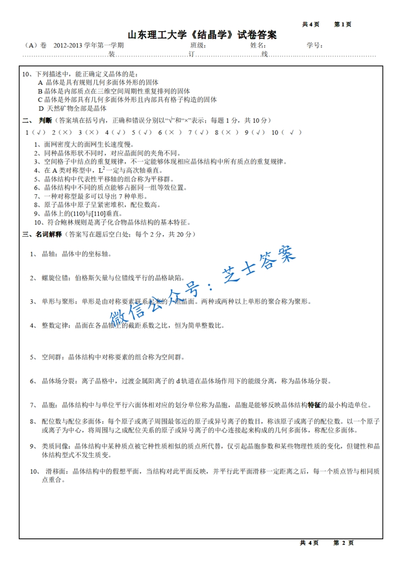 山东理工大学《结晶学》2012-2013学年第一学期期末试卷A卷猴哥6个月前发布关注私信1.10MB4页03052山东理工大学《结晶学》2012-2013学年第一学期期末试卷A卷此内容为付费资源,请付费后查看10积分年度会员免费月享会员免费登录购买付费资源已售 50 第1页 / 共4页 第2页 / 共4页 第3页 / 共4页 试读已结束,还剩1页,您可下载完整版后进行离线阅读 © 版权声明文章版权归作者所有,未经允许请勿转载。THE END《山东理工大学》期中期末历年真题期末试卷 喜欢就支持一下吧点赞52赞赏 分享QQ空间微博QQ好友海报分享复制链接收藏