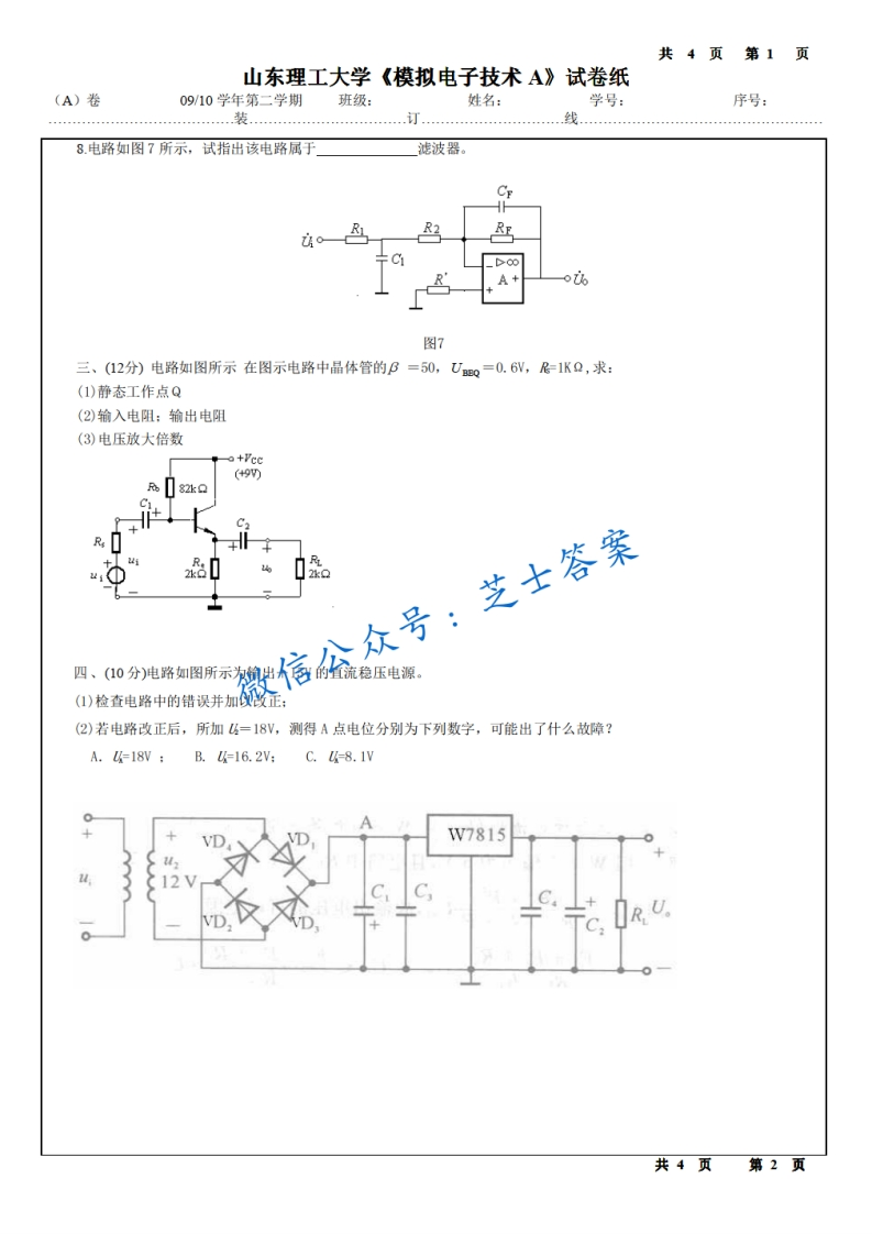 山东理工大学《模拟电子技术》2009-2010学年第二学期期末试卷A卷猴哥6个月前发布关注私信1.01MB6页04853山东理工大学《模拟电子技术》2009-2010学年第二学期期末试卷A卷此内容为付费资源,请付费后查看10积分年度会员免费月享会员免费登录购买付费资源已售 50 第1页 / 共6页 第2页 / 共6页 第3页 / 共6页 试读已结束,还剩3页,您可下载完整版后进行离线阅读 © 版权声明文章版权归作者所有,未经允许请勿转载。THE END《山东理工大学》期中期末历年真题期末试卷 喜欢就支持一下吧点赞53赞赏 分享QQ空间微博QQ好友海报分享复制链接收藏