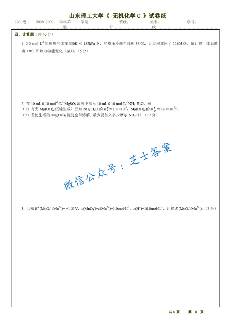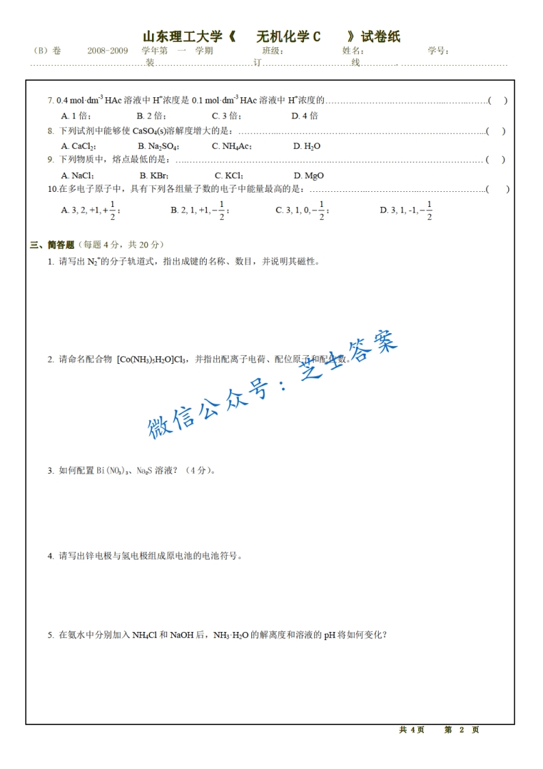 山东理工大学《无机化学》2008-2009学年期末试卷B卷猴哥6个月前发布关注私信0.65MB4页04240山东理工大学《无机化学》2008-2009学年期末试卷B卷此内容为付费资源,请付费后查看10积分年度会员免费月享会员免费登录购买付费资源已售 50 第1页 / 共4页 第2页 / 共4页 第3页 / 共4页 试读已结束,还剩1页,您可下载完整版后进行离线阅读 © 版权声明文章版权归作者所有,未经允许请勿转载。THE END《山东理工大学》期中期末历年真题期末试卷 喜欢就支持一下吧点赞40赞赏 分享QQ空间微博QQ好友海报分享复制链接收藏