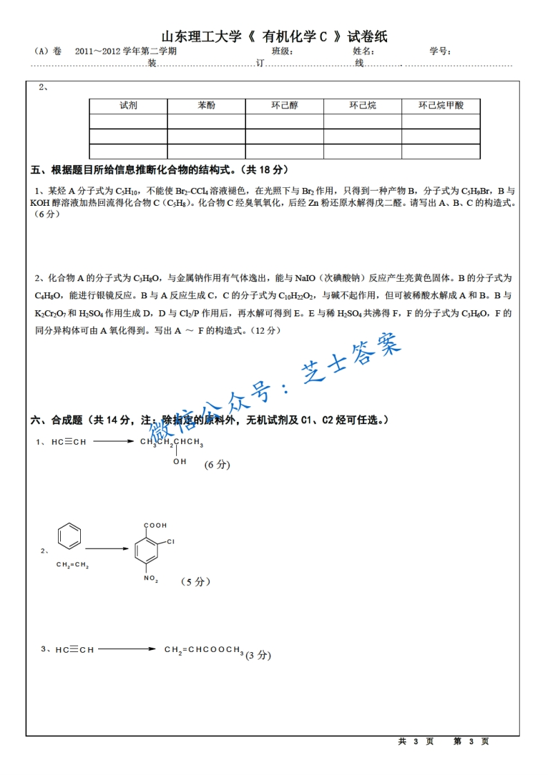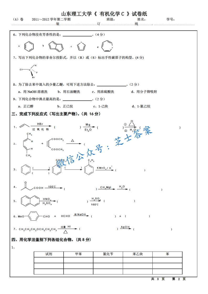 山东理工大学《有机化学》2011-2012学年第二学期期末试卷猴哥6个月前发布关注私信0.56MB3页03920山东理工大学《有机化学》2011-2012学年第二学期期末试卷此内容为付费资源,请付费后查看10积分年度会员免费月享会员免费登录购买付费资源已售 50 第1页 / 共3页 第2页 / 共3页 第3页 / 共3页 已完成全部阅读,共3页 © 版权声明文章版权归作者所有,未经允许请勿转载。THE END《山东理工大学》期中期末历年真题期末试卷 喜欢就支持一下吧点赞20赞赏 分享QQ空间微博QQ好友海报分享复制链接收藏