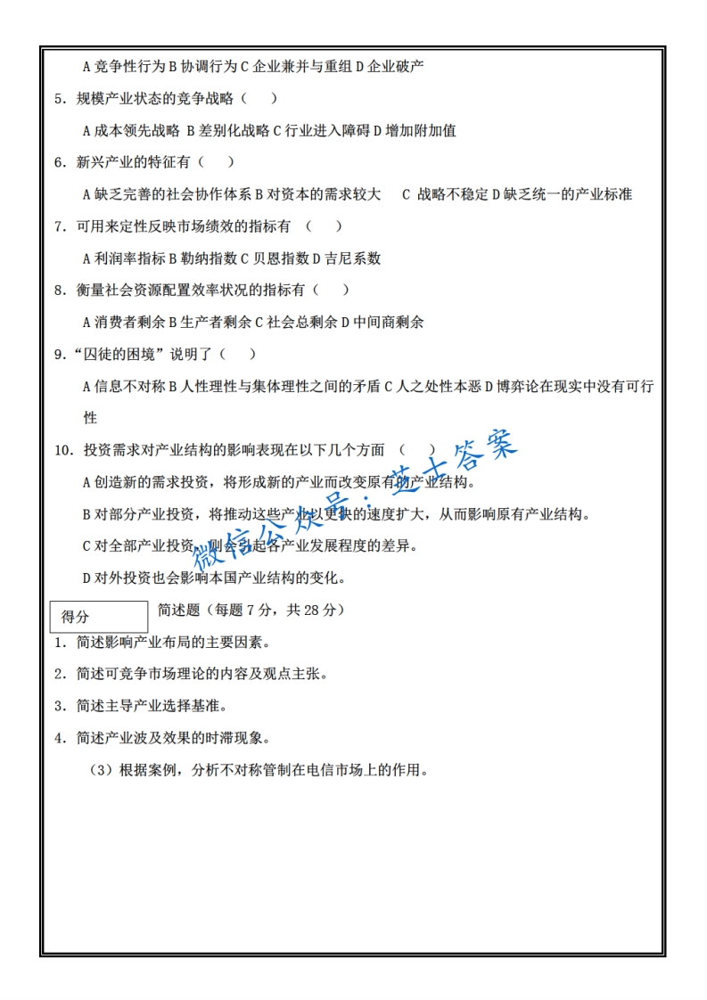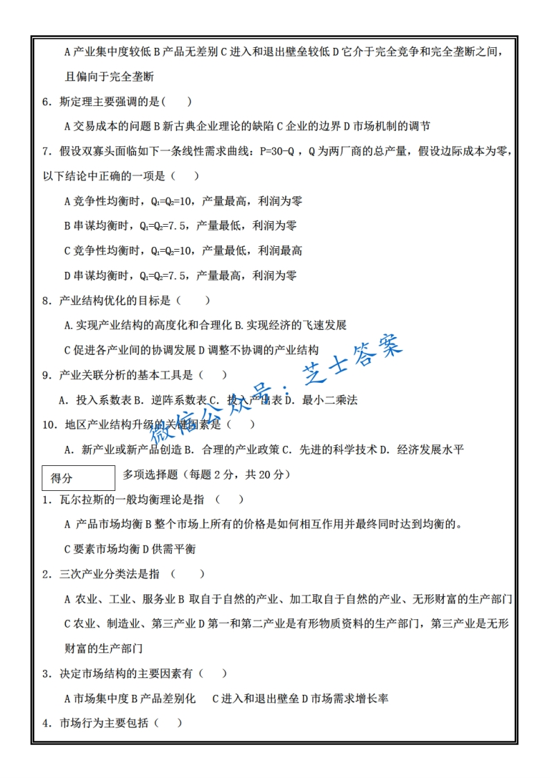 山东农业大学《产业经济学》2010-2011学年第一学期期末试卷C卷猴哥6个月前发布关注私信1.22MB5页04648山东农业大学《产业经济学》2010-2011学年第一学期期末试卷C卷此内容为付费资源,请付费后查看10积分年度会员免费月享会员免费登录购买付费资源已售 50 第1页 / 共5页 第2页 / 共5页 第3页 / 共5页 试读已结束,还剩2页,您可下载完整版后进行离线阅读 © 版权声明文章版权归作者所有,未经允许请勿转载。THE END《山东农业大学》期中期末历年真题期末试卷 喜欢就支持一下吧点赞48赞赏 分享QQ空间微博QQ好友海报分享复制链接收藏