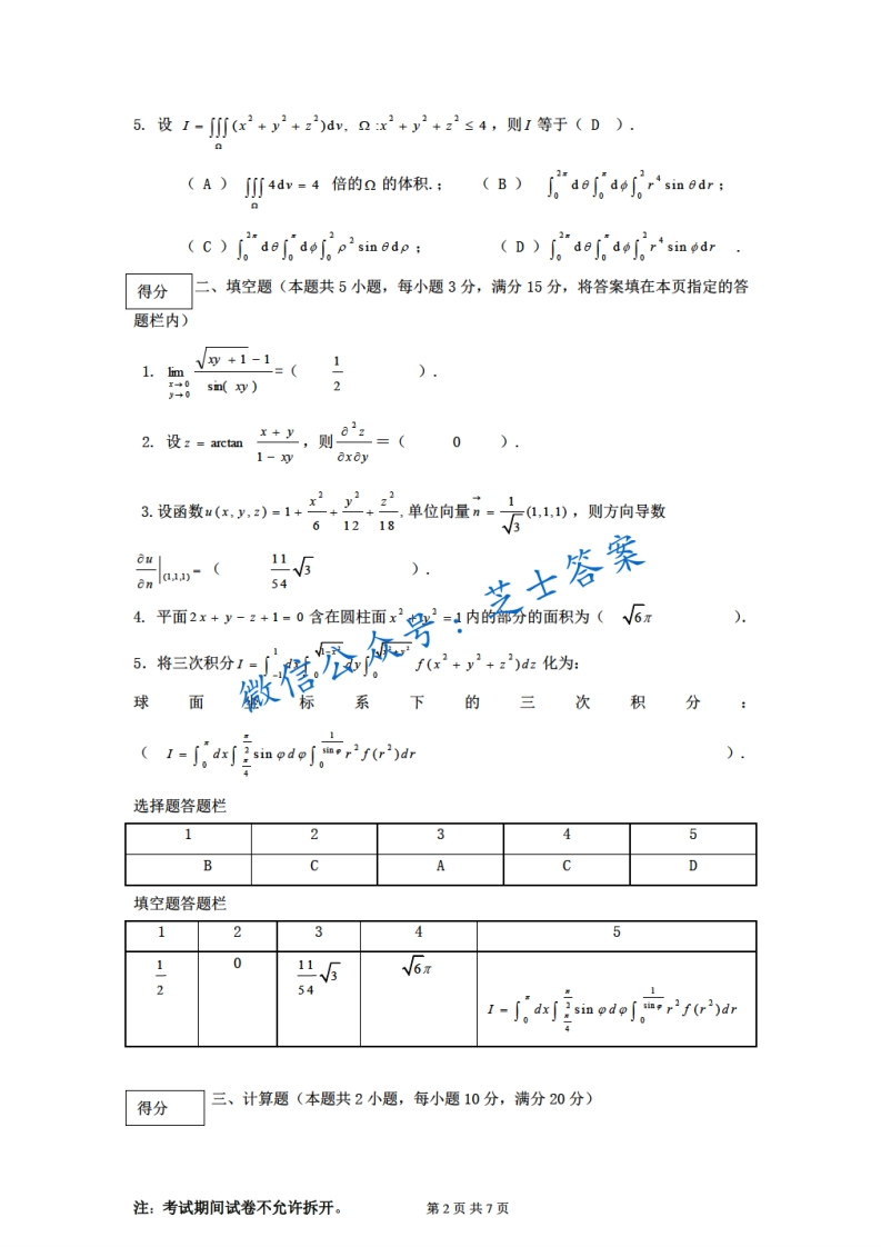 山东农业大学《高等数学A2》2010-2011学年第二学期期中试卷A卷猴哥6个月前发布关注私信0.96MB7页08325山东农业大学《高等数学A2》2010-2011学年第二学期期中试卷A卷此内容为付费资源,请付费后查看10积分年度会员免费月享会员免费登录购买付费资源已售 50 第1页 / 共7页 第2页 / 共7页 第3页 / 共7页 试读已结束,还剩4页,您可下载完整版后进行离线阅读 © 版权声明文章版权归作者所有,未经允许请勿转载。THE END《山东农业大学》期中期末历年真题期末试卷 喜欢就支持一下吧点赞25赞赏 分享QQ空间微博QQ好友海报分享复制链接收藏