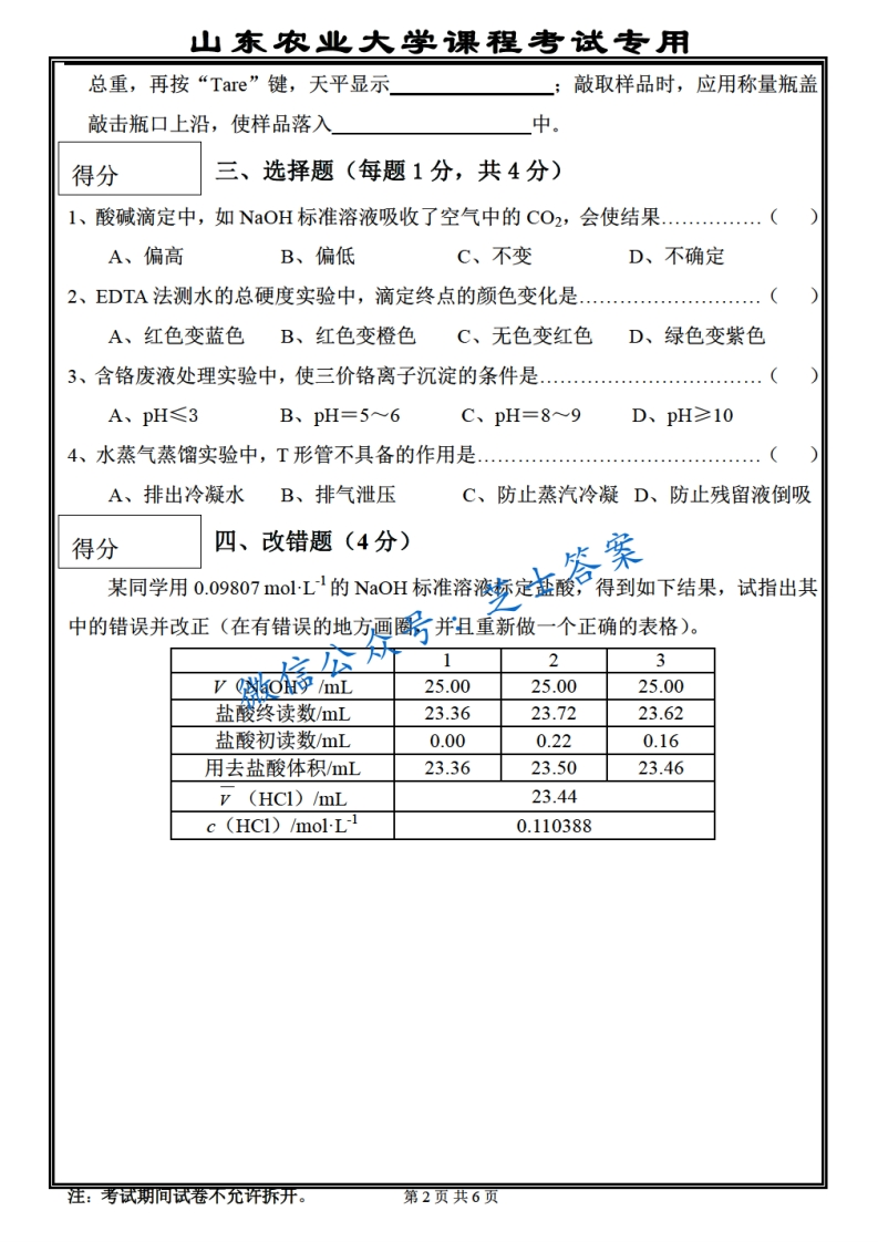 山东农业大学《基础化学实验》2007-2008学年第二学期期末试卷A卷猴哥6个月前发布关注私信1.59MB6页03818山东农业大学《基础化学实验》2007-2008学年第二学期期末试卷A卷此内容为付费资源,请付费后查看10积分年度会员免费月享会员免费登录购买付费资源已售 50 第1页 / 共6页 第2页 / 共6页 第3页 / 共6页 试读已结束,还剩3页,您可下载完整版后进行离线阅读 © 版权声明文章版权归作者所有,未经允许请勿转载。THE END《山东农业大学》期中期末历年真题期末试卷 喜欢就支持一下吧点赞18赞赏 分享QQ空间微博QQ好友海报分享复制链接收藏