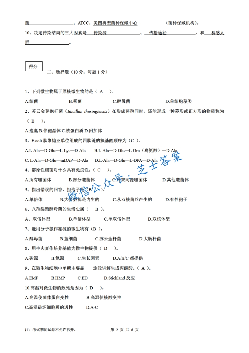 山东农业大学《普通微生物学》2013-2014学年第二学期期末试卷A卷猴哥6个月前发布关注私信1.98MB6页09127山东农业大学《普通微生物学》2013-2014学年第二学期期末试卷A卷此内容为付费资源,请付费后查看10积分年度会员免费月享会员免费登录购买付费资源已售 50 第1页 / 共6页 第2页 / 共6页 第3页 / 共6页 试读已结束,还剩3页,您可下载完整版后进行离线阅读 © 版权声明文章版权归作者所有,未经允许请勿转载。THE END《山东农业大学》期中期末历年真题期末试卷 喜欢就支持一下吧点赞27赞赏 分享QQ空间微博QQ好友海报分享复制链接收藏