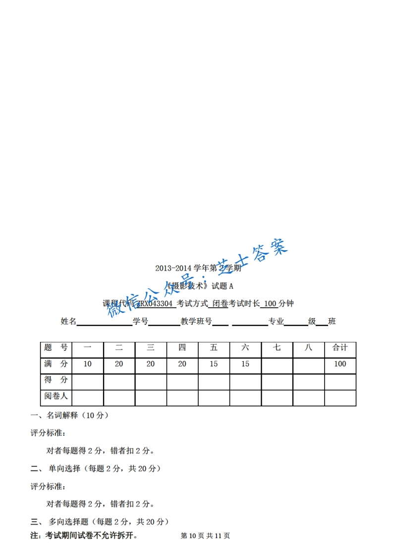 山东农业大学《摄影技术》2013-2014学年第二学期期末试卷A卷猴哥6个月前发布关注私信2.20MB11页08754山东农业大学《摄影技术》2013-2014学年第二学期期末试卷A卷此内容为付费资源,请付费后查看10积分年度会员免费月享会员免费登录购买付费资源已售 50 第1页 / 共11页 第2页 / 共11页 第3页 / 共11页 试读已结束,还剩8页,您可下载完整版后进行离线阅读 © 版权声明文章版权归作者所有,未经允许请勿转载。THE END《山东农业大学》期中期末历年真题期末试卷 喜欢就支持一下吧点赞54赞赏 分享QQ空间微博QQ好友海报分享复制链接收藏