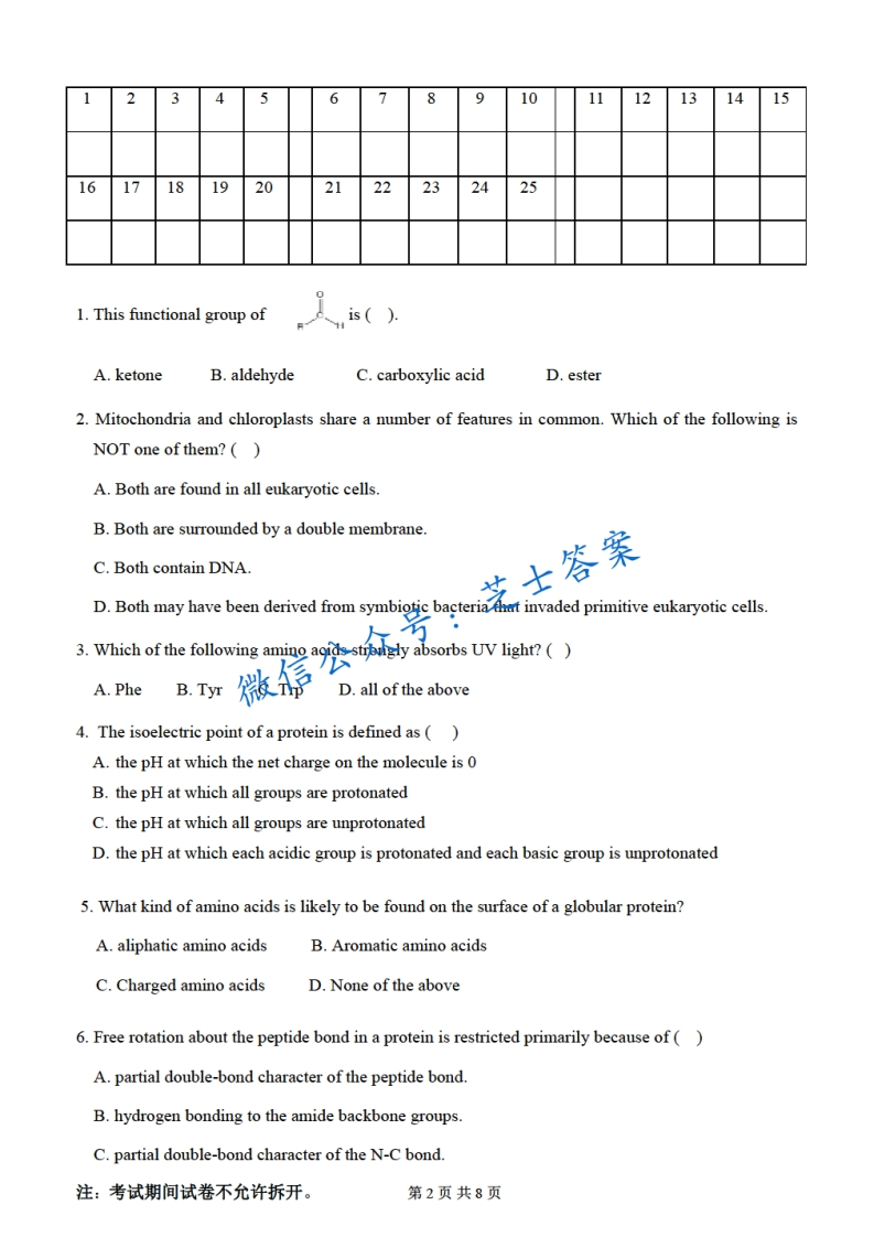 山东农业大学《生物化学》2012-2013学年第一学期期末试卷A卷猴哥6个月前发布关注私信1.16MB8页03857山东农业大学《生物化学》2012-2013学年第一学期期末试卷A卷此内容为付费资源,请付费后查看10积分年度会员免费月享会员免费登录购买付费资源已售 50 第1页 / 共8页 第2页 / 共8页 第3页 / 共8页 试读已结束,还剩5页,您可下载完整版后进行离线阅读 © 版权声明文章版权归作者所有,未经允许请勿转载。THE END《山东农业大学》期中期末历年真题期末试卷 喜欢就支持一下吧点赞57赞赏 分享QQ空间微博QQ好友海报分享复制链接收藏