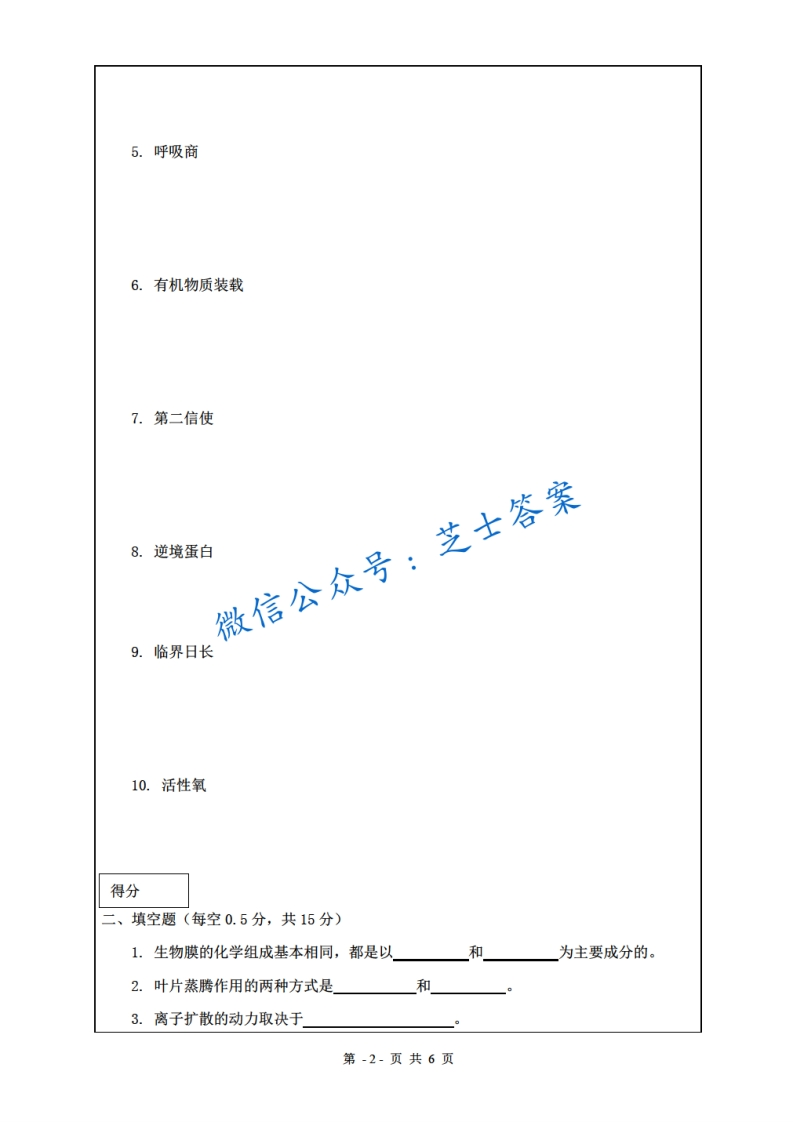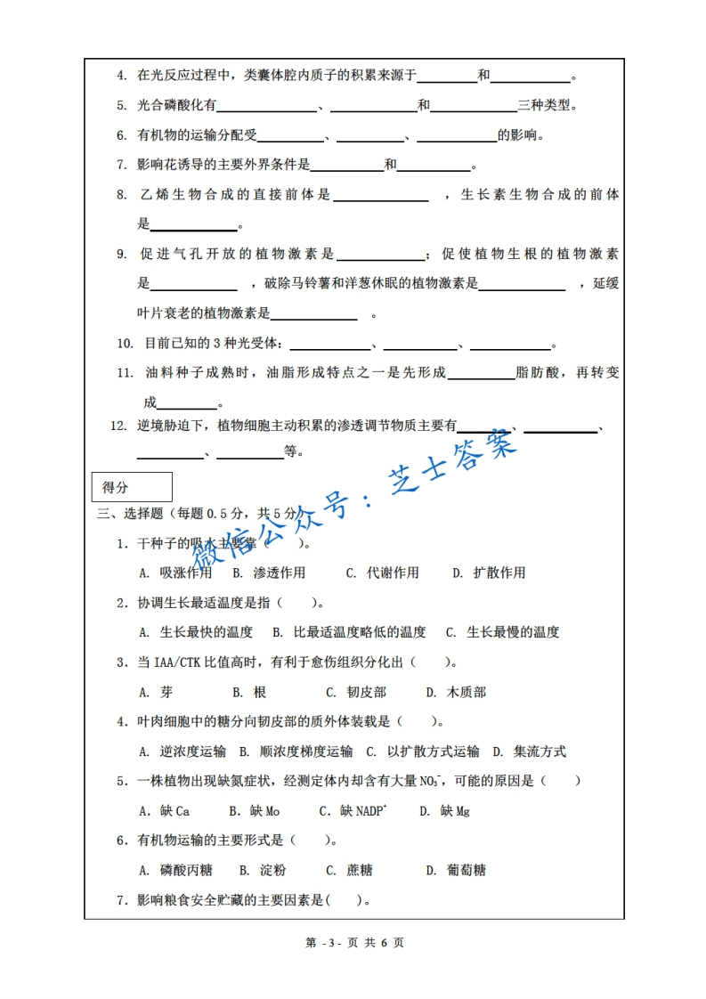 山东农业大学《植物生理学》2007-2008学年第二学期期末试卷A卷猴哥6个月前发布关注私信0.70MB6页09755山东农业大学《植物生理学》2007-2008学年第二学期期末试卷A卷此内容为付费资源,请付费后查看10积分年度会员免费月享会员免费登录购买付费资源已售 50 第1页 / 共6页 第2页 / 共6页 第3页 / 共6页 试读已结束,还剩3页,您可下载完整版后进行离线阅读 © 版权声明文章版权归作者所有,未经允许请勿转载。THE END《山东农业大学》期中期末历年真题期末试卷 喜欢就支持一下吧点赞55赞赏 分享QQ空间微博QQ好友海报分享复制链接收藏