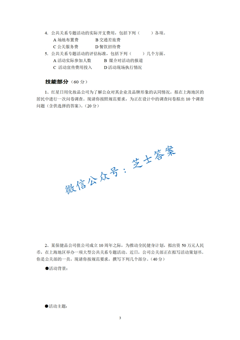 上海师范大学《公共关系写作》2007-2008学年第二学期期末试卷A卷猴哥6个月前更新关注私信1.03MB6页01W+928上海师范大学《公共关系写作》2007-2008学年第二学期期末试卷A卷此内容为付费资源,请付费后查看10积分年度会员免费月享会员免费登录购买付费资源已售 76 第1页 / 共6页 第2页 / 共6页 第3页 / 共6页 试读已结束,还剩3页,您可下载完整版后进行离线阅读 © 版权声明文章版权归作者所有,未经允许请勿转载。THE END《上海师范大学》期中期末历年真题期末试卷 喜欢就支持一下吧点赞928赞赏 分享QQ空间微博QQ好友海报分享复制链接收藏