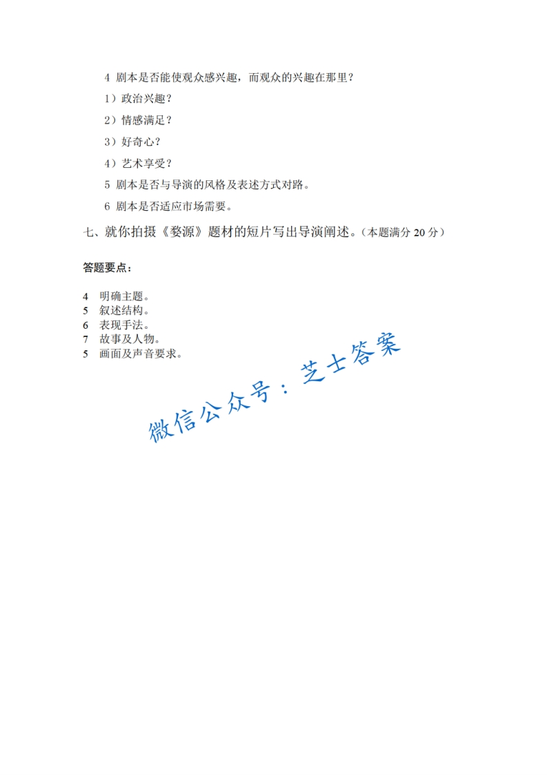 上海师范大学《影视导演》2005-2006学年第二学期期末试卷B卷猴哥6个月前更新关注私信0.53MB3页01W+940上海师范大学《影视导演》2005-2006学年第二学期期末试卷B卷此内容为付费资源,请付费后查看10积分年度会员免费月享会员免费登录购买付费资源已售 76 第1页 / 共3页 第2页 / 共3页 第3页 / 共3页 已完成全部阅读,共3页 © 版权声明文章版权归作者所有,未经允许请勿转载。THE END《上海师范大学》期中期末历年真题期末试卷 喜欢就支持一下吧点赞940赞赏 分享QQ空间微博QQ好友海报分享复制链接收藏