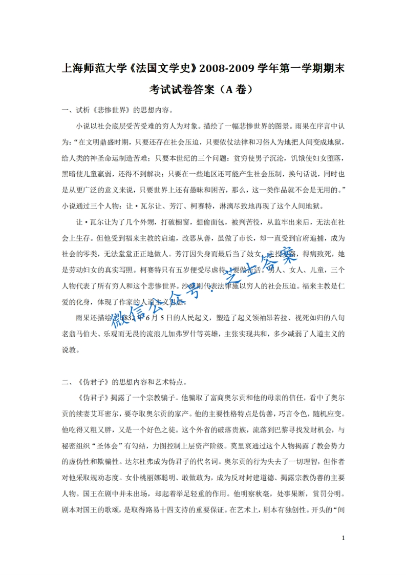 上海师范大学《法国文学史》2008-2009学年第一学期期末试卷A卷猴哥6个月前更新关注私信0.73MB3页01W+921上海师范大学《法国文学史》2008-2009学年第一学期期末试卷A卷此内容为付费资源,请付费后查看10积分年度会员免费月享会员免费登录购买付费资源已售 76 第1页 / 共3页 第2页 / 共3页 第3页 / 共3页 已完成全部阅读,共3页 © 版权声明文章版权归作者所有,未经允许请勿转载。THE END《上海师范大学》期中期末历年真题期末试卷 喜欢就支持一下吧点赞921赞赏 分享QQ空间微博QQ好友海报分享复制链接收藏