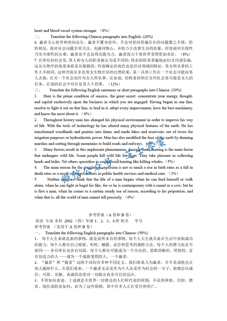 上海师范大学《翻译》2005-2006学年第一学期期末试卷A卷猴哥6个月前更新关注私信0.90MB3页01W+949上海师范大学《翻译》2005-2006学年第一学期期末试卷A卷此内容为付费资源,请付费后查看10积分年度会员免费月享会员免费登录购买付费资源已售 76 第1页 / 共3页 第2页 / 共3页 第3页 / 共3页 已完成全部阅读,共3页 © 版权声明文章版权归作者所有,未经允许请勿转载。THE END《上海师范大学》期中期末历年真题期末试卷 喜欢就支持一下吧点赞949赞赏 分享QQ空间微博QQ好友海报分享复制链接收藏