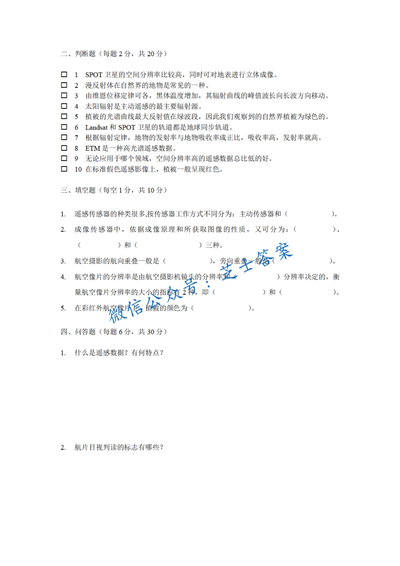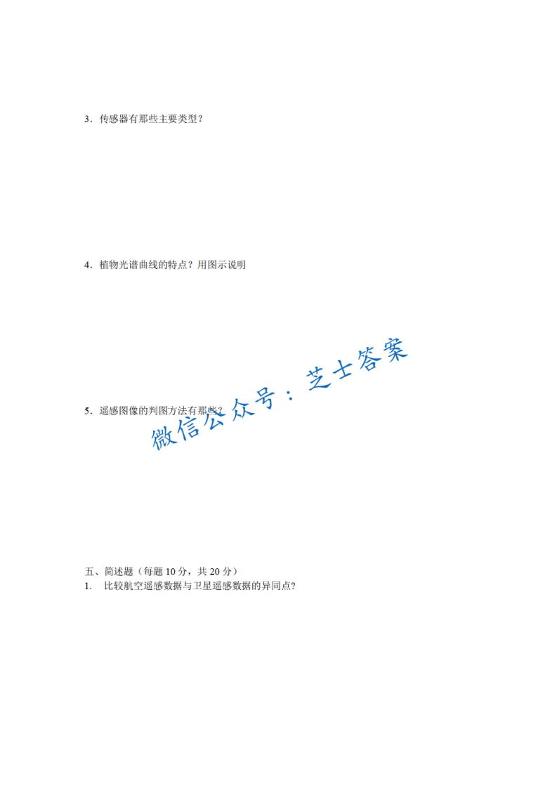 上海师范大学《遥感概论》2009-2010学年第二学期期末试卷A卷猴哥6个月前更新关注私信1.33MB7页01W+929上海师范大学《遥感概论》2009-2010学年第二学期期末试卷A卷此内容为付费资源,请付费后查看10积分年度会员免费月享会员免费登录购买付费资源已售 76 第1页 / 共7页 第2页 / 共7页 第3页 / 共7页 试读已结束,还剩4页,您可下载完整版后进行离线阅读 © 版权声明文章版权归作者所有,未经允许请勿转载。THE END《上海师范大学》期中期末历年真题期末试卷 喜欢就支持一下吧点赞929赞赏 分享QQ空间微博QQ好友海报分享复制链接收藏