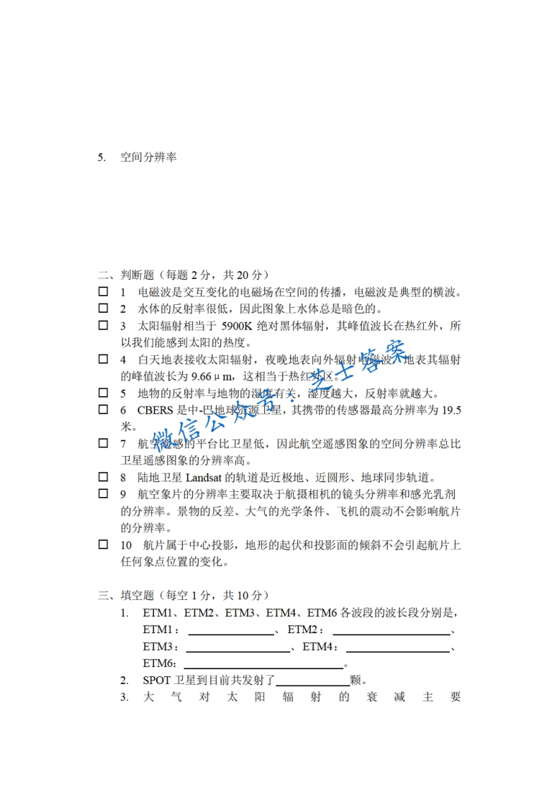 上海师范大学《遥感概论》2012-2013学年第一学期期末试卷B卷猴哥6个月前更新关注私信1.70MB9页01W+918上海师范大学《遥感概论》2012-2013学年第一学期期末试卷B卷此内容为付费资源,请付费后查看10积分年度会员免费月享会员免费登录购买付费资源已售 76 第1页 / 共9页 第2页 / 共9页 第3页 / 共9页 试读已结束,还剩6页,您可下载完整版后进行离线阅读 © 版权声明文章版权归作者所有,未经允许请勿转载。THE END《上海师范大学》期中期末历年真题期末试卷 喜欢就支持一下吧点赞918赞赏 分享QQ空间微博QQ好友海报分享复制链接收藏