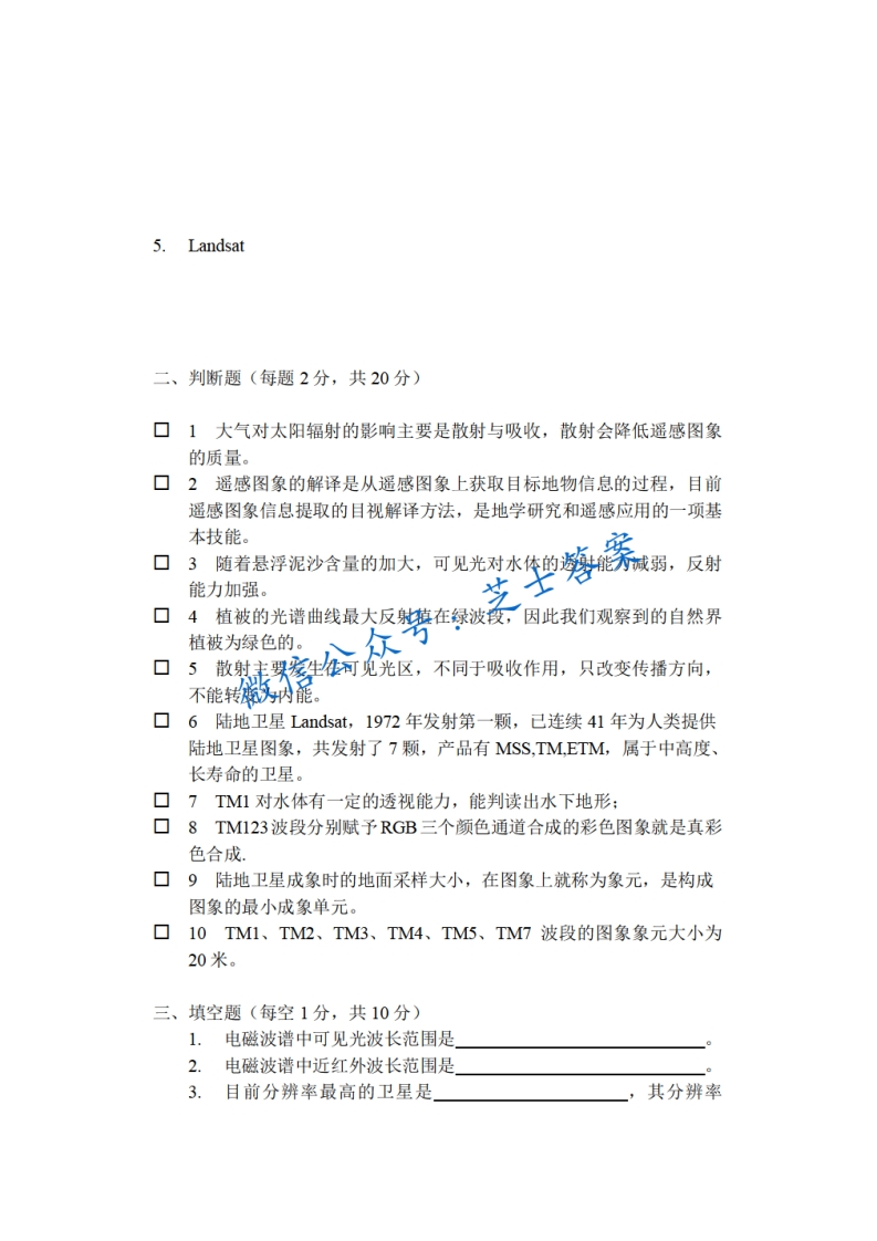 上海师范大学《遥感概论》2012-2013学年第二学期期末试卷A卷猴哥6个月前更新关注私信0.51MB5页01W+916上海师范大学《遥感概论》2012-2013学年第二学期期末试卷A卷此内容为付费资源,请付费后查看10积分年度会员免费月享会员免费登录购买付费资源已售 76 第1页 / 共5页 第2页 / 共5页 第3页 / 共5页 试读已结束,还剩2页,您可下载完整版后进行离线阅读 © 版权声明文章版权归作者所有,未经允许请勿转载。THE END《上海师范大学》期中期末历年真题期末试卷 喜欢就支持一下吧点赞916赞赏 分享QQ空间微博QQ好友海报分享复制链接收藏