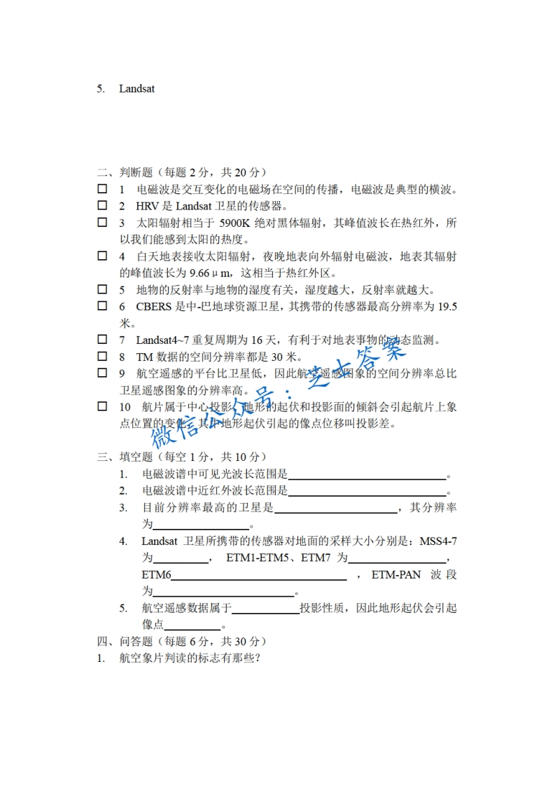 上海师范大学《遥感概论》2013-2014学年第一学期期末试卷A卷猴哥6个月前更新关注私信1.99MB7页01W+939上海师范大学《遥感概论》2013-2014学年第一学期期末试卷A卷此内容为付费资源,请付费后查看10积分年度会员免费月享会员免费登录购买付费资源已售 76 第1页 / 共7页 第2页 / 共7页 第3页 / 共7页 试读已结束,还剩4页,您可下载完整版后进行离线阅读 © 版权声明文章版权归作者所有,未经允许请勿转载。THE END《上海师范大学》期中期末历年真题期末试卷 喜欢就支持一下吧点赞939赞赏 分享QQ空间微博QQ好友海报分享复制链接收藏
