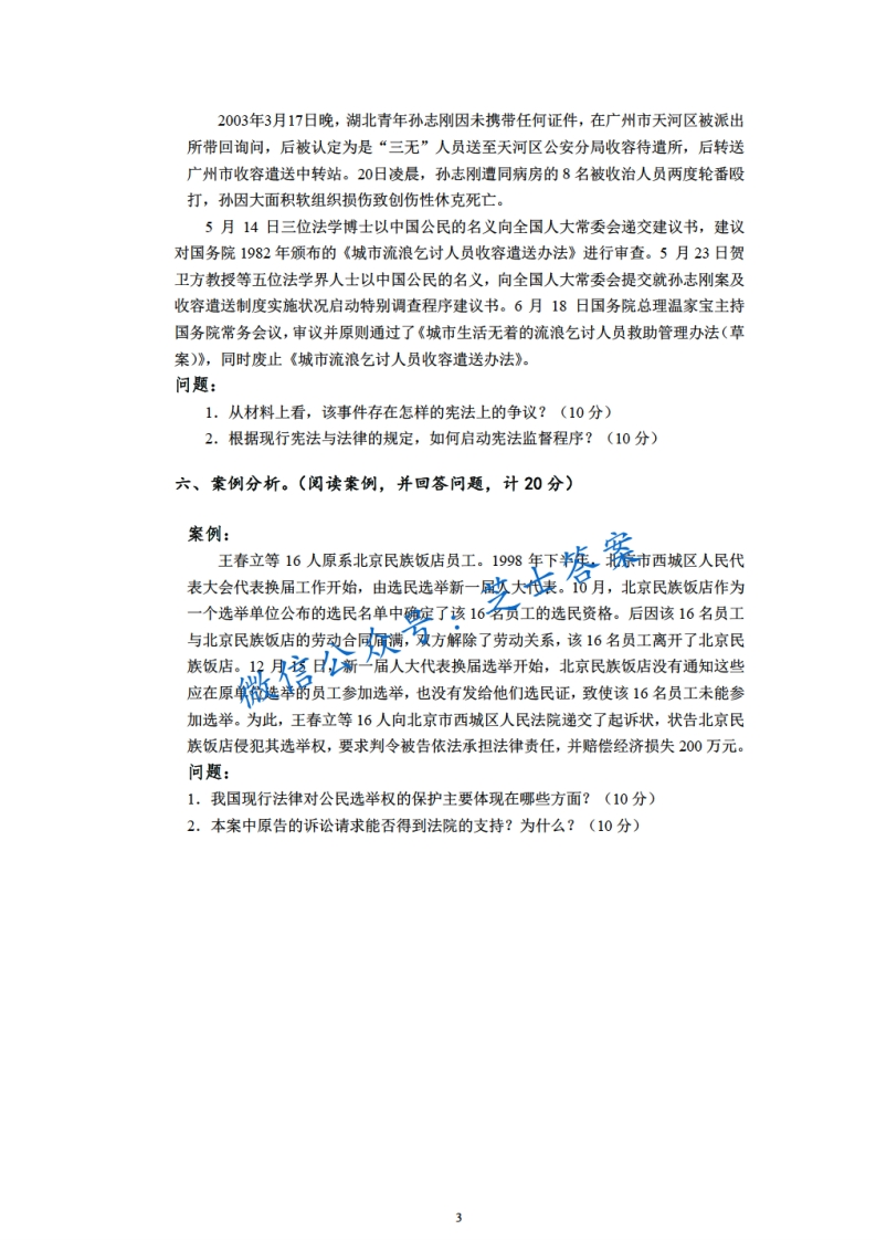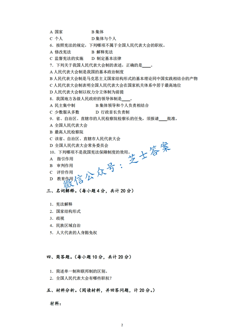 上海财经大学《中国宪法学》2010-2011学年期末试卷猴哥6个月前更新关注私信0.88MB3页01W+936上海财经大学《中国宪法学》2010-2011学年期末试卷此内容为付费资源,请付费后查看10积分年度会员免费月享会员免费登录购买付费资源已售 76 第1页 / 共3页 第2页 / 共3页 第3页 / 共3页 已完成全部阅读,共3页 © 版权声明文章版权归作者所有,未经允许请勿转载。THE END《上海财经大学》期中期末历年真题期末试卷 喜欢就支持一下吧点赞936赞赏 分享QQ空间微博QQ好友海报分享复制链接收藏