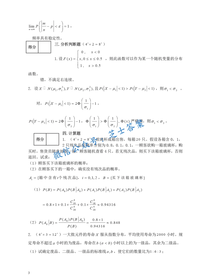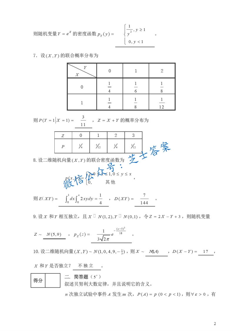 上海财经大学《概率论与数理统计》2007-2008学年第一学期期末试卷A卷猴哥6个月前更新关注私信0.55MB5页01W+968上海财经大学《概率论与数理统计》2007-2008学年第一学期期末试卷A卷此内容为付费资源,请付费后查看10积分年度会员免费月享会员免费登录购买付费资源已售 76 第1页 / 共5页 第2页 / 共5页 第3页 / 共5页 试读已结束,还剩2页,您可下载完整版后进行离线阅读 © 版权声明文章版权归作者所有,未经允许请勿转载。THE END《上海财经大学》期中期末历年真题期末试卷 喜欢就支持一下吧点赞968赞赏 分享QQ空间微博QQ好友海报分享复制链接收藏