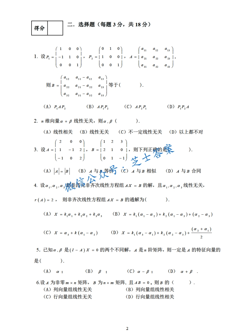 上海财经大学《线性代数》2010-2011学年第二学期期末试卷A卷猴哥6个月前更新关注私信0.60MB6页01W+938上海财经大学《线性代数》2010-2011学年第二学期期末试卷A卷此内容为付费资源,请付费后查看10积分年度会员免费月享会员免费登录购买付费资源已售 76 第1页 / 共6页 第2页 / 共6页 第3页 / 共6页 试读已结束,还剩3页,您可下载完整版后进行离线阅读 © 版权声明文章版权归作者所有,未经允许请勿转载。THE END《上海财经大学》期中期末历年真题期末试卷 喜欢就支持一下吧点赞938赞赏 分享QQ空间微博QQ好友海报分享复制链接收藏