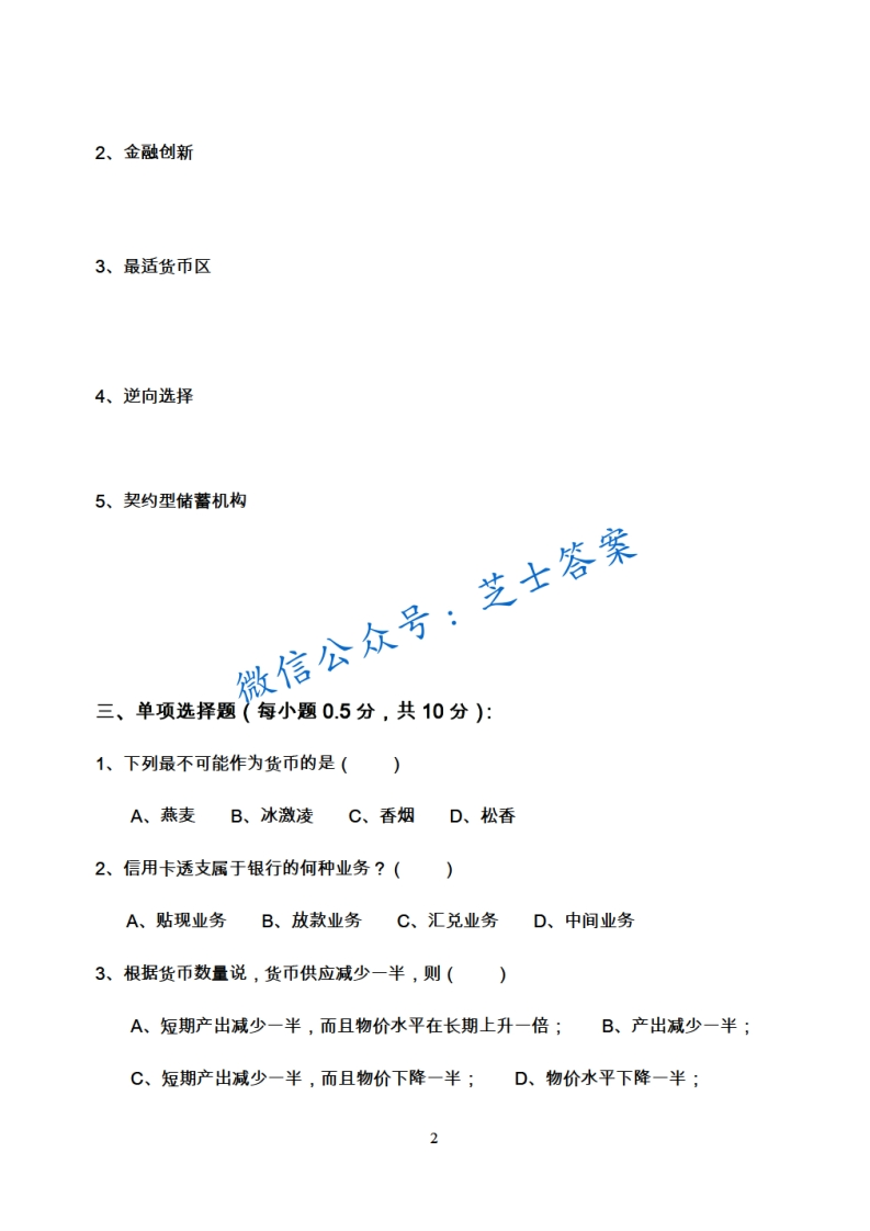 上海财经大学《货币银行学》2009-2010学年第二学期期末试卷猴哥6个月前更新关注私信1.03MB9页01W+962上海财经大学《货币银行学》2009-2010学年第二学期期末试卷此内容为付费资源,请付费后查看10积分年度会员免费月享会员免费登录购买付费资源已售 76 第1页 / 共9页 第2页 / 共9页 第3页 / 共9页 试读已结束,还剩6页,您可下载完整版后进行离线阅读 © 版权声明文章版权归作者所有,未经允许请勿转载。THE END《上海财经大学》期中期末历年真题期末试卷 喜欢就支持一下吧点赞962赞赏 分享QQ空间微博QQ好友海报分享复制链接收藏
