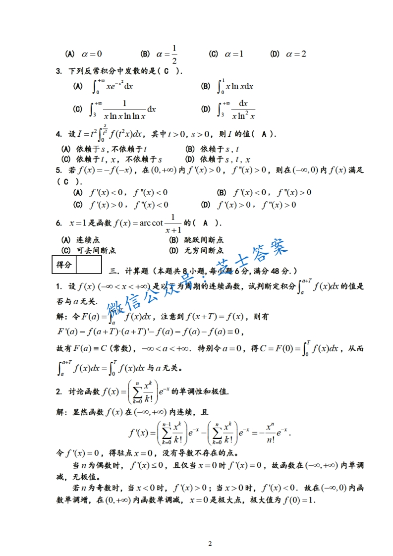 上海财经大学《高等数学》2010-2011学年第一学期期末试卷A卷猴哥6个月前更新关注私信1.02MB6页01W+928上海财经大学《高等数学》2010-2011学年第一学期期末试卷A卷此内容为付费资源,请付费后查看10积分年度会员免费月享会员免费登录购买付费资源已售 76 第1页 / 共6页 第2页 / 共6页 第3页 / 共6页 试读已结束,还剩3页,您可下载完整版后进行离线阅读 © 版权声明文章版权归作者所有,未经允许请勿转载。THE END《上海财经大学》期中期末历年真题期末试卷 喜欢就支持一下吧点赞928赞赏 分享QQ空间微博QQ好友海报分享复制链接收藏