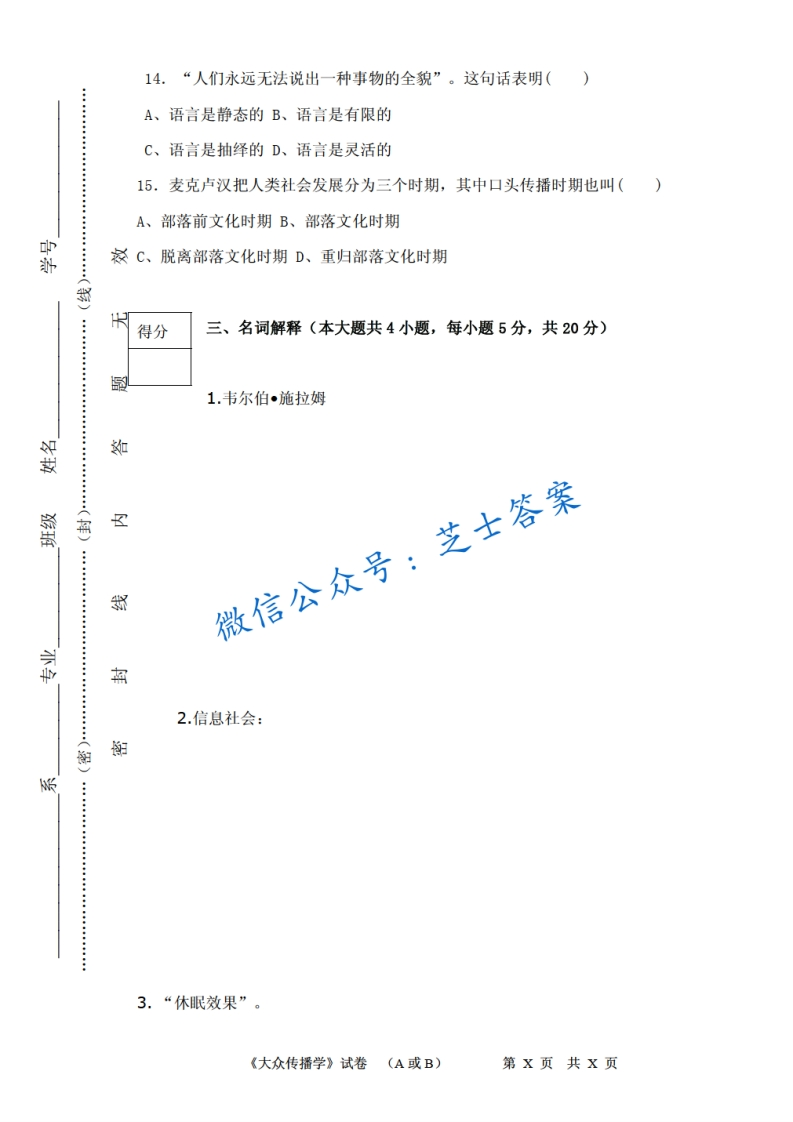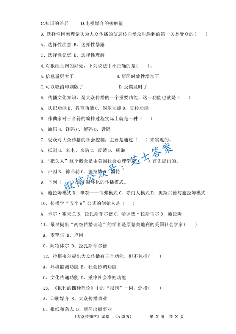 四川师范大学《大众传播学》2010-2011学年第一学期期末试卷B卷-学习资源网 - 分享优质学习资料