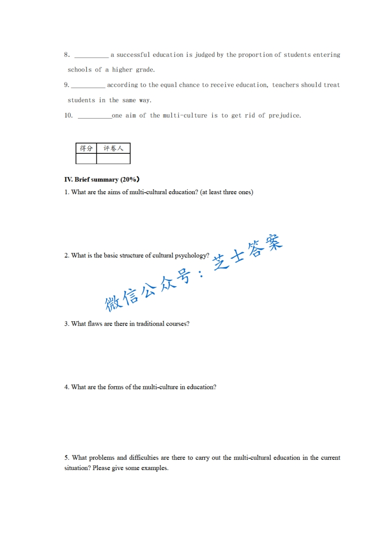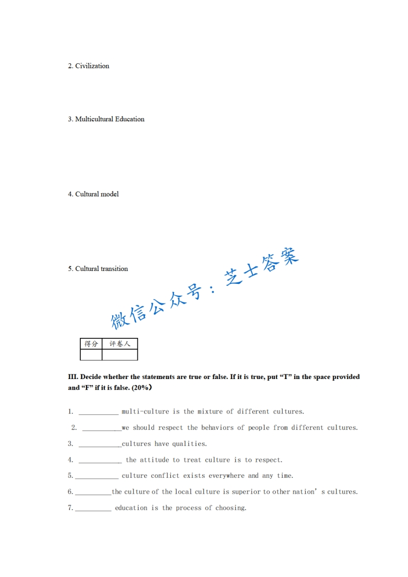 四川师范大学《多元文化教育学》2007-2008学年第一学期期末试卷A卷猴哥6个月前发布关注私信0.92MB8页09658四川师范大学《多元文化教育学》2007-2008学年第一学期期末试卷A卷此内容为付费资源,请付费后查看10积分年度会员免费月享会员免费登录购买付费资源已售 50 第1页 / 共8页 第2页 / 共8页 第3页 / 共8页 试读已结束,还剩5页,您可下载完整版后进行离线阅读 © 版权声明文章版权归作者所有,未经允许请勿转载。THE END《四川师范大学》期中期末历年真题期末试卷 喜欢就支持一下吧点赞58赞赏 分享QQ空间微博QQ好友海报分享复制链接收藏