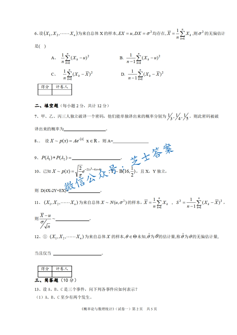 四川师范大学《概率论与数理统计》2005-2006学年第二学期期末试卷猴哥6个月前发布关注私信0.65MB5页09263四川师范大学《概率论与数理统计》2005-2006学年第二学期期末试卷此内容为付费资源,请付费后查看10积分年度会员免费月享会员免费登录购买付费资源已售 50 第1页 / 共5页 第2页 / 共5页 第3页 / 共5页 试读已结束,还剩2页,您可下载完整版后进行离线阅读 © 版权声明文章版权归作者所有,未经允许请勿转载。THE END《四川师范大学》期中期末历年真题期末试卷 喜欢就支持一下吧点赞63赞赏 分享QQ空间微博QQ好友海报分享复制链接收藏