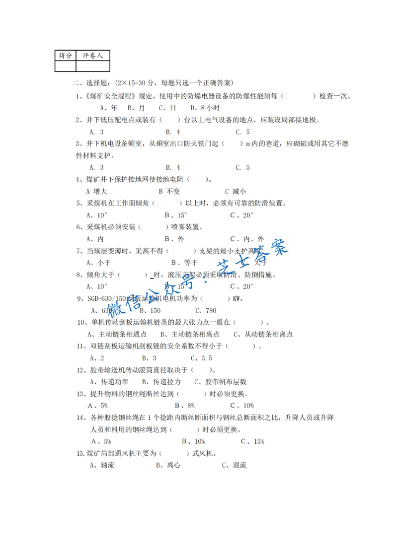 四川师范大学《煤矿机电安全管理》2009-2010学年第二学期期末试卷二卷猴哥6个月前发布关注私信1.08MB6页09911四川师范大学《煤矿机电安全管理》2009-2010学年第二学期期末试卷二卷此内容为付费资源,请付费后查看10积分年度会员免费月享会员免费登录购买付费资源已售 50 第1页 / 共6页 第2页 / 共6页 第3页 / 共6页 试读已结束,还剩3页,您可下载完整版后进行离线阅读 © 版权声明文章版权归作者所有,未经允许请勿转载。THE END《四川师范大学》期中期末历年真题期末试卷 喜欢就支持一下吧点赞11赞赏 分享QQ空间微博QQ好友海报分享复制链接收藏