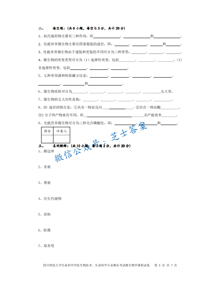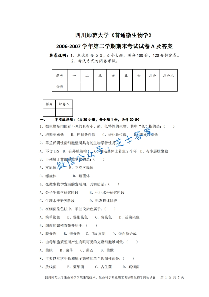 四川师范大学《普通微生物学》2006-2007学年第二学期期末试卷A卷-学习资源网 - 分享优质学习资料