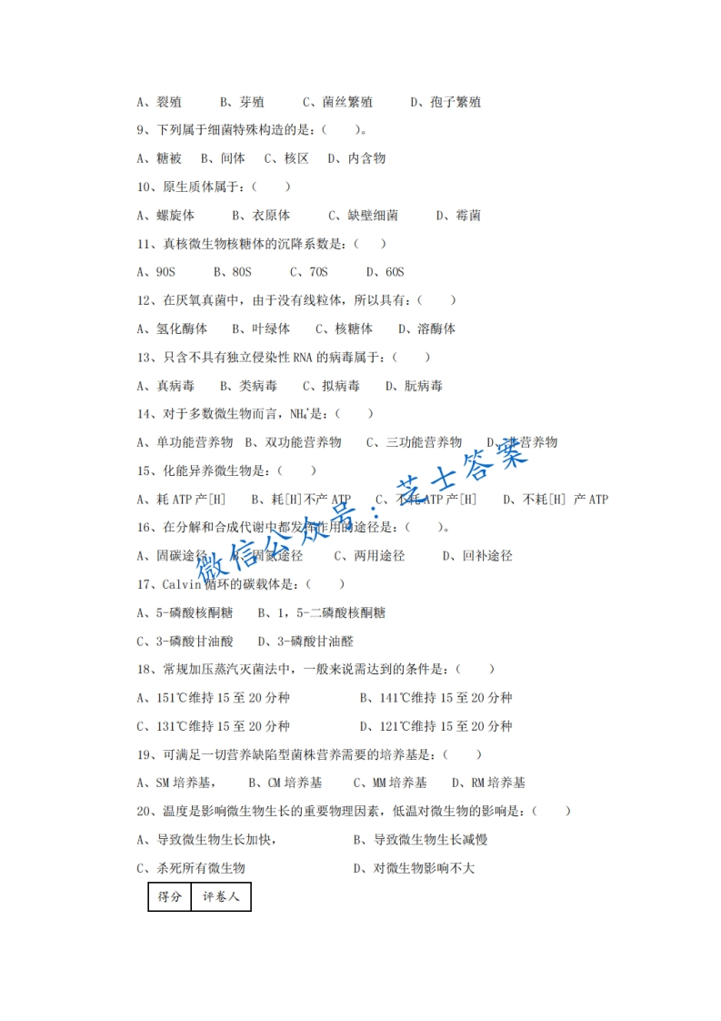 四川师范大学《普通微生物学》2006-2007学年第二学期期末试卷C卷-学习资源网 - 分享优质学习资料