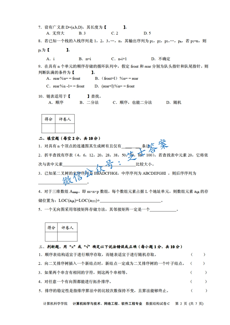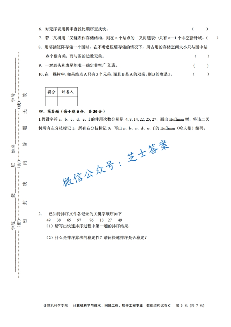 四川师范大学《数据结构》2007-2008学年第一学期期末试卷C卷-学习资源网 - 分享优质学习资料